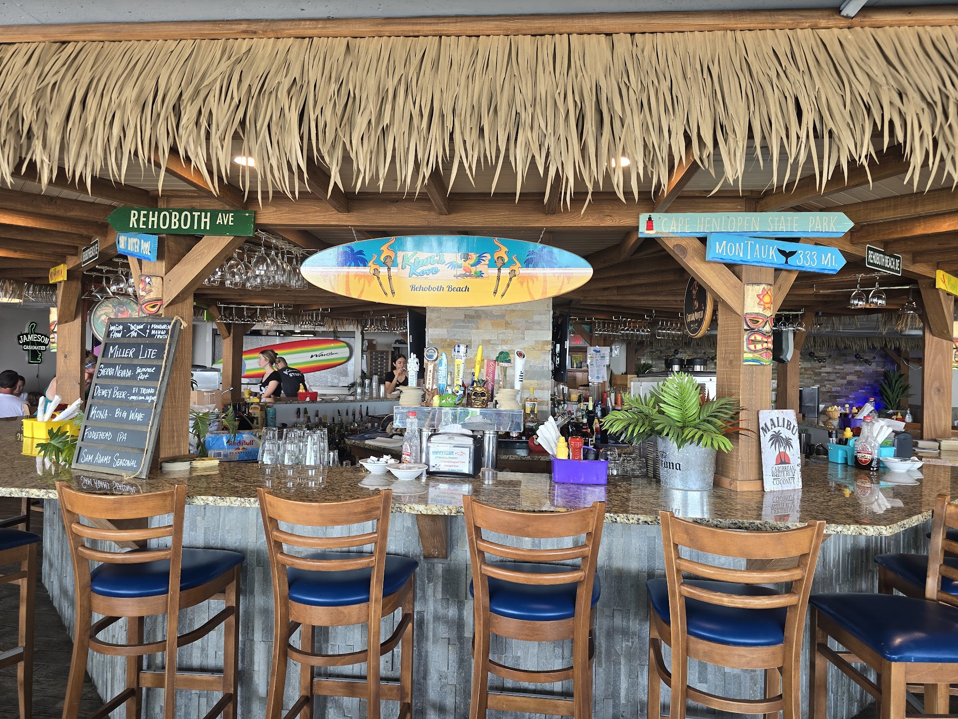 What a fun little place! We were there during the off-season as a quick impromptu visit to the area. There was an event happening in the hotel when we were there so this place was packed at night and even stayed open later than published. Live music, TV's throughout and a nice large bar and spacious tables that overlook the water. We just stopped in for some basketball and a drink after dinner somewhere else, but decided to try some "bar food" and got the nacho appetizer to pick at with our drinks. It was HUGE but it was loaded with so much on it (even more than was in the description) that the chips couldn't be picked up with your hands, so it was a little difficult to eat at the bar. There was only one bartender but he totally rocked the large crowd with ease. My first drink was kind of bitter but he quickly made me a new one that was great and didn't even charge me for it. He laughed as he admitted he had forgotten the simple syrup. I was amazed with the amount of people there that he could remember anything. I can only imagine how hoping that place is during the summer season with the outside Tiki bar open. It's a nice spot to be if you want good drinks, lots of food choices, reasonable prices and a...