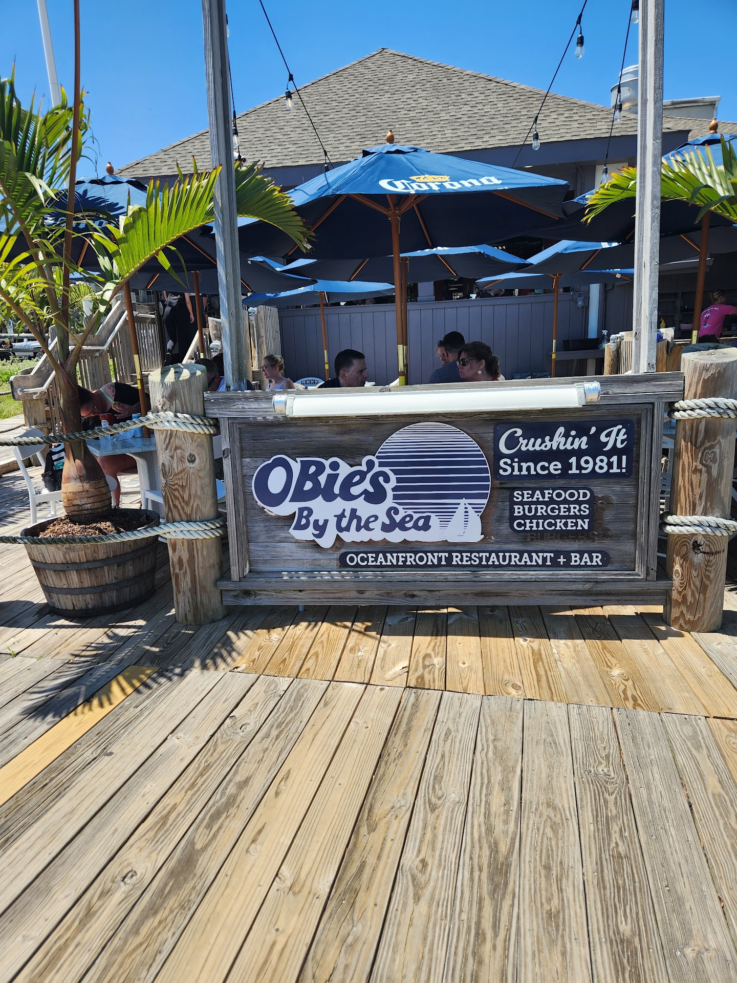 Ā Ā Ā Read moreWe came to Obie's because we were searching for a restaurant in the Rehoboth area open late. We checked the website and viewed their menu. It looked good, but expensive. ($33 for 1lb of shrimp and over $70 for 1.25lb of snow crab legs.) Our gps led us right to the boardwalk hotel which didn't surprise me considering the pricing on the menu. What did surprise me was the restaurant actually being a dive across the street. Upon entering we weren't greeted and had to search out an employee who told us to seat ourselves. We did and were greeted by a waitress who gave us their "late night" menu of appetizers and a drink menu. We were disappointed by the limited selections because their website made no mention of it. I ordered a cucumber spritzer, chicken tenders and the cucumber tomato salad. My husband ordered a margarita and a lb of steamed shrimp. The drinks came promptly and my spritzer was just as expected. However, my husband's margarita looked like water. It was completely clear and he said it tasted like water and tequila. The food arrived in a timely manner and I enjoyed the chicken tenders and cucumber tomato salad even though it didn't have any tomatoes in it. The shrimp were bland, but edible. We won't be visiting here again. Please don't come here expecting a fine...