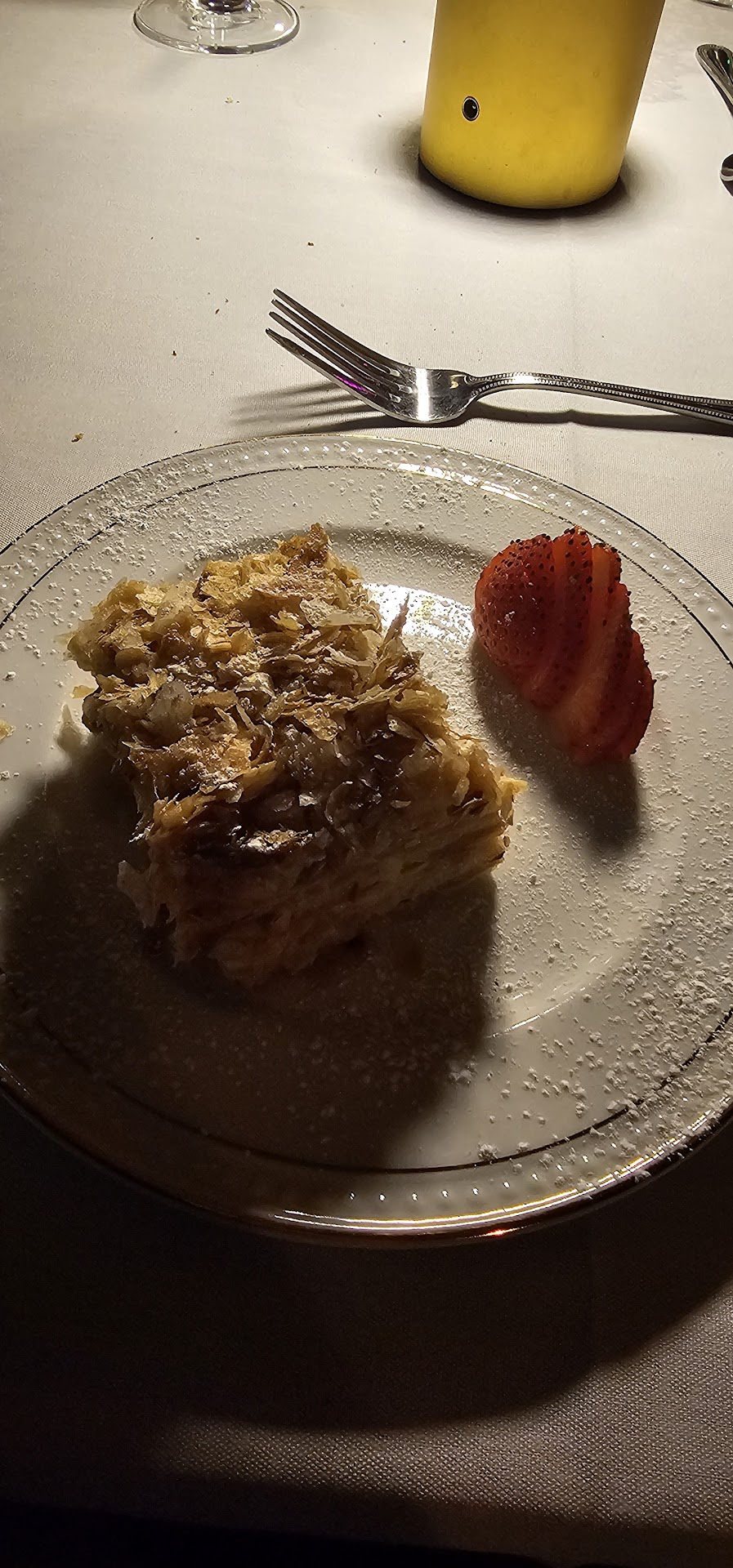 We concluded with Napoleon for dessert, which was amazing. It reminded me of a crepe mixed with Bakalva, flaky and creamy.