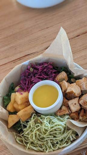 Read moreWow! First, itâs great to have dedicated vegan and vegetarian options in this area, which can be frustrating when you donât want to eat meat and/ or youâre looking to eat something other than a traditional salad, or fried stuff. Second- itâs also hard for me to find food without onions and garlic, to which I have a severe sensitivity. Finally- the food was fresh and delicious. I ordered a bowl with lots of different options and add-ons, so I could taste a variety of their food. I had the Japanese kale, vegan egg salad, tri-colored quinoa, balsamic mushrooms, cilantro brown rice, and grown flax for some extra fiber. I also ordered the vegan chocolate cheesecake, but havenât tried it yet (I was so excited to share with others who are vegetarian/ vegan or just want that option, I wanted to get my review in right away!) I couldnât eat the sauce because it had garlic in it. That would be my only request- to have a sauce w/o onions and garlic, because itâs nice to pair these bowls with one. :-) food arrived very fast (I chose delivery, and paying the extra delivery fee was worth it,!if youâre familiar with high season traffic). 5 stars and more! Please eat here so they stick around for those of us who really want this food!...