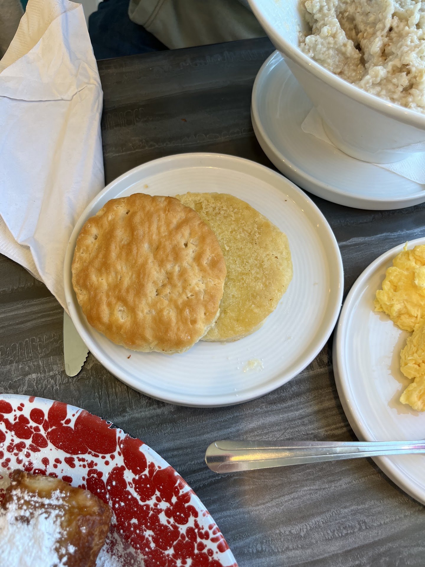 It was my second visit to SBC and had breakfast both visits. Today, there were 5 of us and we all enjoyed different dishes. I love their crepes. Today I enjoyed the veggie, with a side of perfectly cooked well done bacon. The crepes remind me of my favorite place in Key West, Banana Cafe. Their savory crepes comes with some greens with a light dressing. That sounds like enough for a great breakfast but oh no, I read about their crab cakes and ordered one of them as well. Being from Baltimore, great crab cakes are scarce here. This was wonderful, on par with my Baltimore favorite, from Pappas's. One person had the classic Sunny Bay breakfast, another the pancakes which she said were great. One had the Greek omelet and she liked that very much, and another had the chicken cordon blue crepe, also wonderful. To finish off the feast, we 5 shared 2 sweet crepes, the blueberry cream, chock full of fresh blueberries a silky cream and whipped cream. The other sweet crepe was the apple and that too was wonderful. I can't wait to get back there and enjoy more of their menu, and...