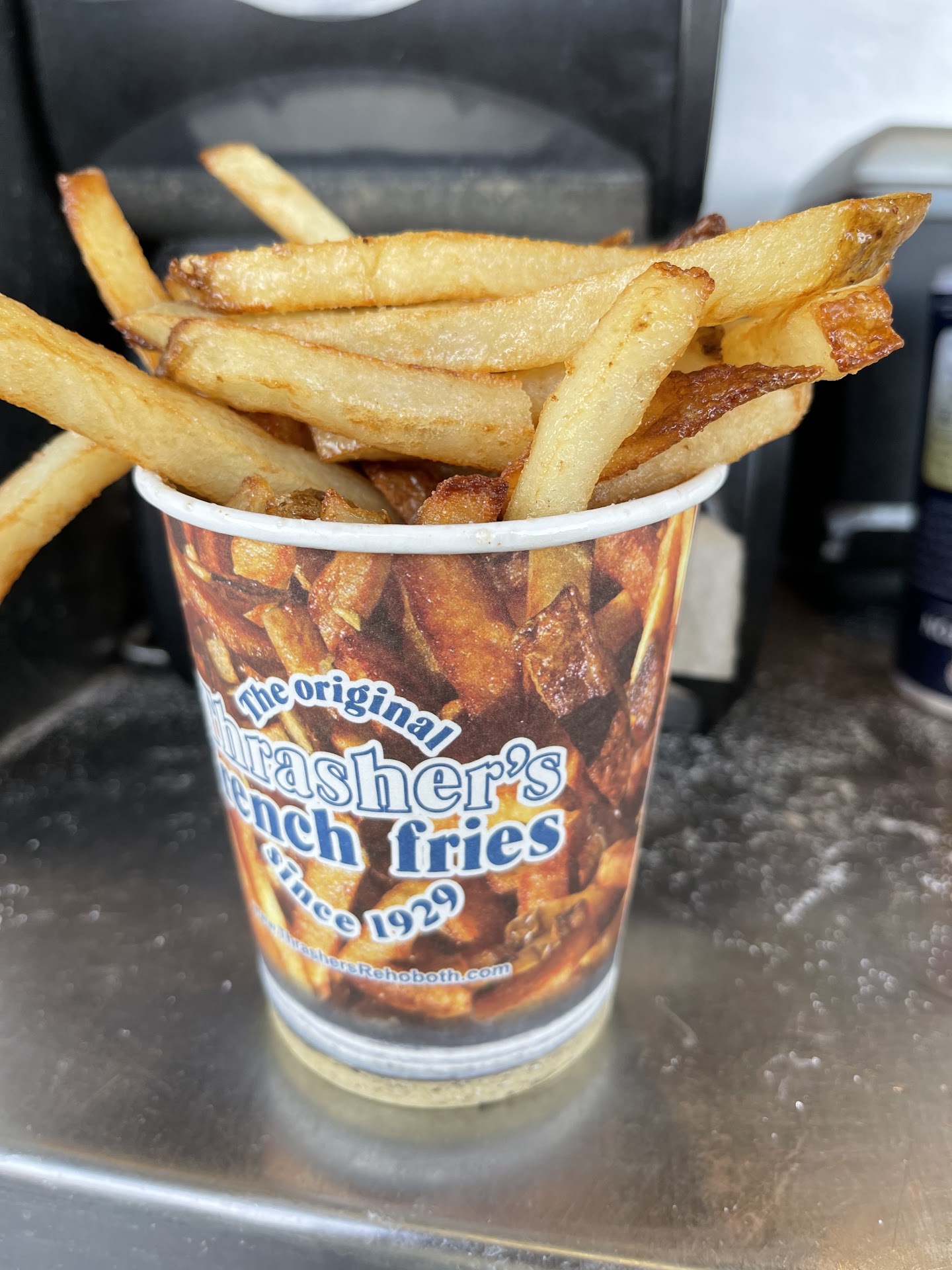 Read moreIf the Spartan, Thespian, & Phocian men who guarded the Oracle of Delphi were able to celebrate their accomplishment at the Battle of Thermopylae ,they would have chosen Thrasher's French Fries ... Nevermind that there were no deep fryers or Coca-Cola to wash them down with ... If Prometheus had a choice between Thrasher's & the đĽ of Mount Olympus ,we would only be able to read during the day ... Sisyphus would never make it to the top if there was a Thrashers on the way up ... A simple recipe of fresh cut potatoes, fried up in peanut oil & the flavorings of apple vinegar & sea salt has turned Thrasher's into a destination unto itself ... The Rehoboth locations are ever bit as glorious as the old Ocean City spot... Traditions don't get to be traditions without something powerful behind them ... This is a good damn French fry ...