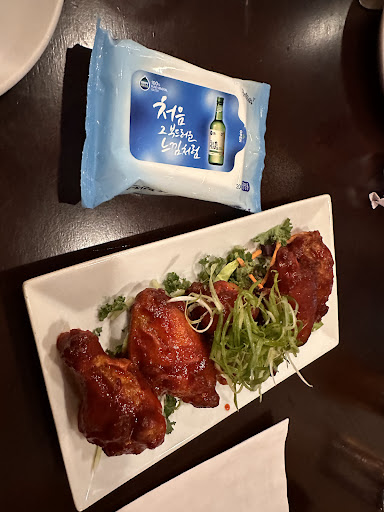 Read moreHad dinner with my two sons while vacationing in Reno. Until this one, every meal had been average at best, with a couple bad ones thrown in, so our hopes were not high. However, we were blown away by the interesting menu, delightful staff, and incredible food - wow! We started with the sweet and spicy chicken wings, kimchee fries, and Fire Cracker tater tots - each dish was delicious in different and somewhat unique ways. The chicken wings were cooked perfectly - juicy and tender and smothered in sauce. The fries were topped with kimchee and smothered in a creamy, cheesy sauce, and the tots, while similar (sans kimchee) had their own flavour profile and did not disappoint. We shared two mains - the octopus salad and the bulgogi bowl, and both were fantastic! The octopus was cooked perfectly, tough to do when the tentacles vary in thickness, and the salad was great, with sweet corn offsetting balsamic and chimichurri. My favourite was the bulgogi bowl - the spicy pork, mushrooms, and sauce over rice was the perfect combination for my palette - amazing! I almost forgot - they provide a package of wet wipes with the wings - so much better than a tiny wipe in a small packet, is so greatly appreciated - thanks! My only complaint was the bathrooms - you have to leave the restaurant, head downstairs into a common hallway, and finally make your way to the loo. There is a keypad on the door for security but the door didn’t close properly. It was chilly and raining, so the trip was not pleasant; it would be much less pleasant in a winter snowstorm. Obviously the bathrooms are not an issue as the place was busy. The food sure makes up for the bathroom...