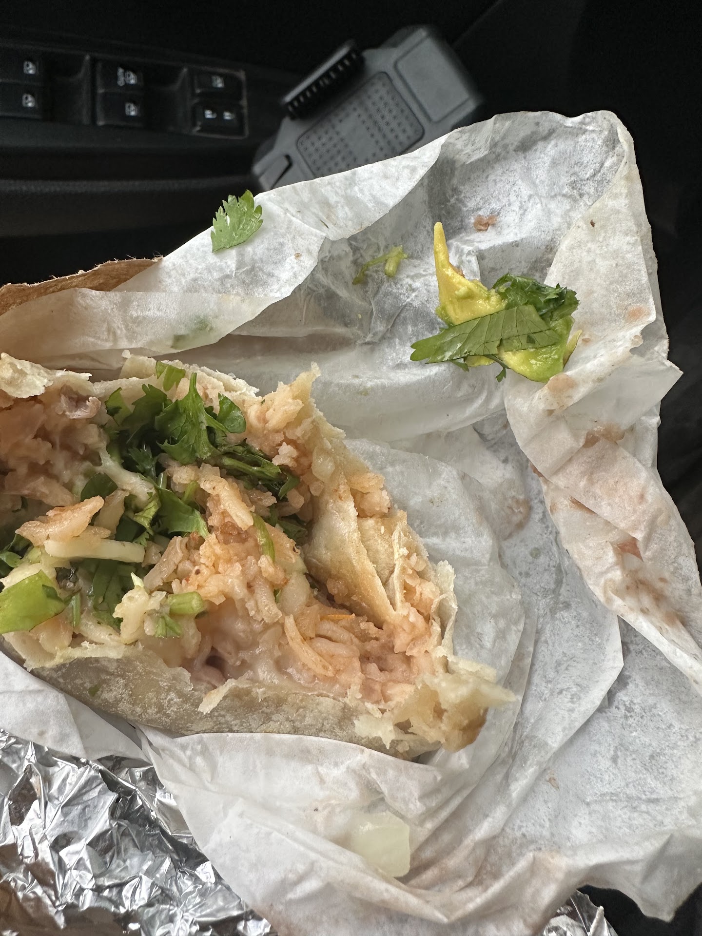 1st bite I felt something cold I thought hmm maybe the salsa and kept eating til I noticed campbells chicken noodle type of things in the middle of the burrito so I picked a few out took pics then went inside and showed the pics and asked what that was, they said jack cheese but the texture was weird and it didn’t melt, I took a few bites them decided I couldn’t do it and definitely didn’t feel right bringing that back to my mom, I tasted the rice because I wanted a good taste in my mouth but that ended up being mushy rice they shldve thrown out. Couldn’t win with this place