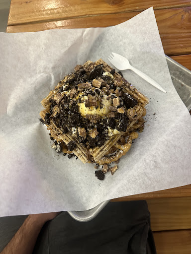 Read moreThis was my first time trying this place, i found about it in a Instagram post. It looked delicious so I decided to try it out. But when I went up to order i wanted to order mini pancakes but the worker said âwe donât have pancakesâ I said âoh you ran out of it?â She just laughed didnât answer my question. So I said âokay Can i get 4 funnel cakesâ she said âhuhâ multiple times, and i literally said â4 funnel cakesâ and she just said âokayâ and asked for a bag of churros. When my order was ready she just gave me one funnel cake and not only that but the churros werenât cooked all the way it was like raw inside. I am going to stick with my usual place which is...