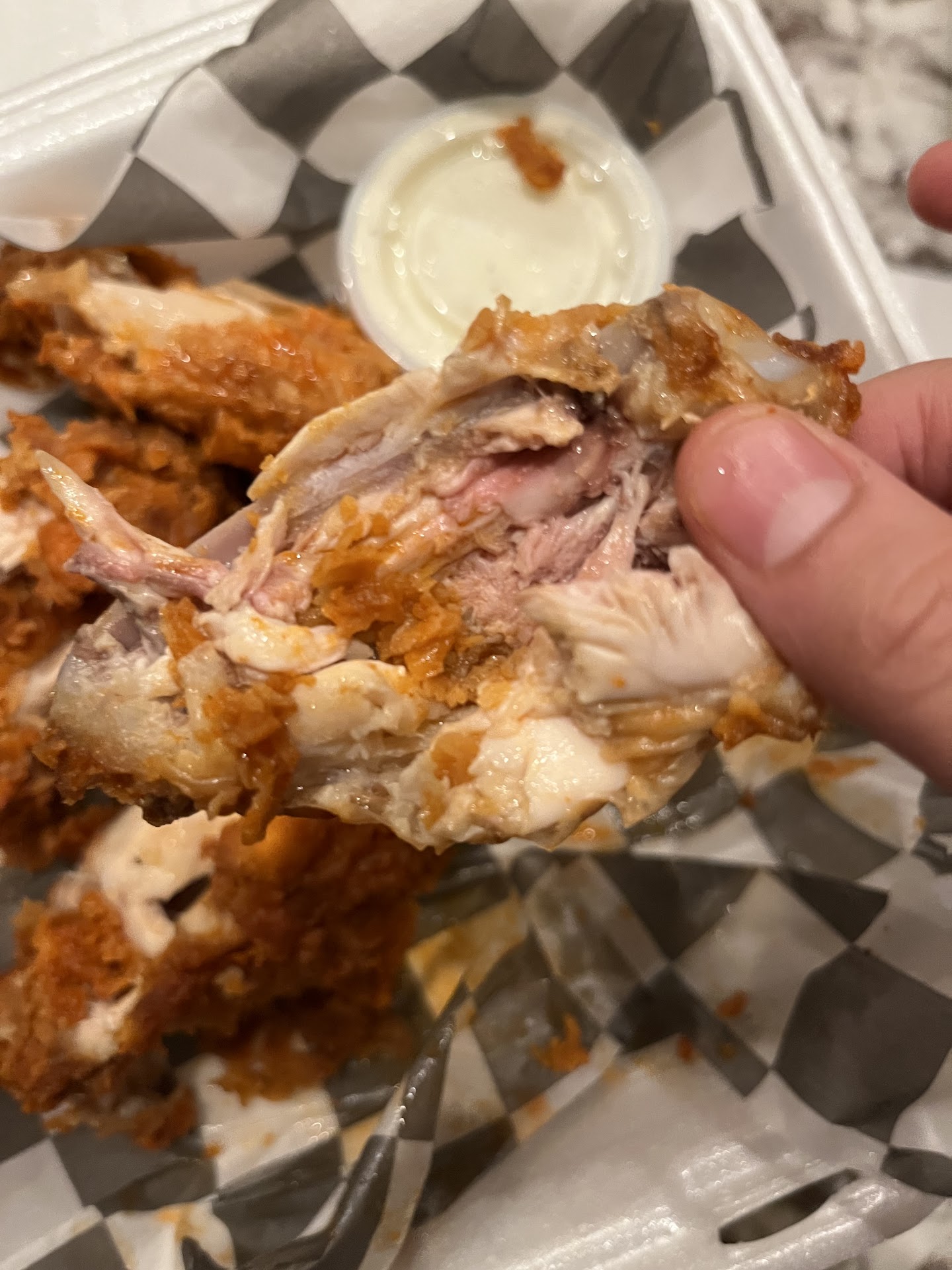 With the first bite, my taste buds embarked on a rollercoaster ride of flavors! The chicken breast was juicy and tender, but hold on to your combs and wattles, folks, because here comes the real star of the show: the "Crazy" sauce! It was a blend of tangy, spicy, and sweet that had me flapping my wings in delight. I nearly sauced on myself.