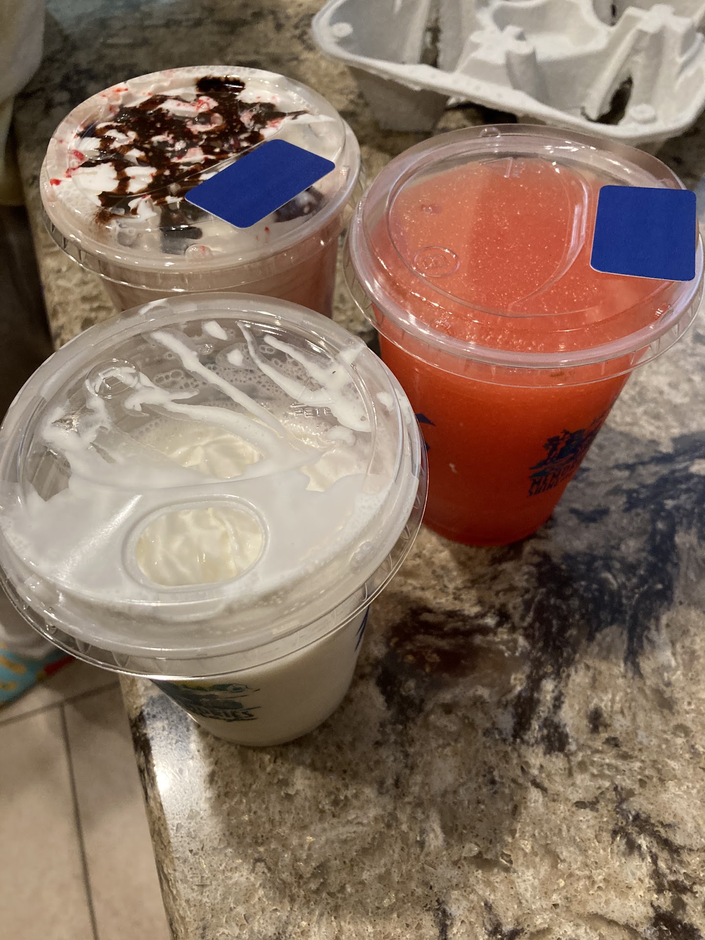 Read moreLoved DB until this night. The server was not at all focused. Too busy saying goodbye with her co workers. Seemed high and not at all there. Literally tripped on her own and landed on the vehicle's driver door in front of us. We Ordered 911 and green tea smoothie and repeated to her more than 3X sweet green tea smoothie with whole milk. She put the tea from a pitcher and added ice, blended and thats it. She handed us stickers that dropped because her depth perception was off. Then just turned around like she didnt even realized what happened. Went back to the green tea she was working on fighting with the blended product to get in the cup. Her co worker even asked if shes OK and she answered "This tea is being stubborn!" Waste of time and money for a watered down tea and ice blended. Totally not the order. Worst service from years of supporting this business. We live 1 hour away. No longer wasting time and money for this type of...