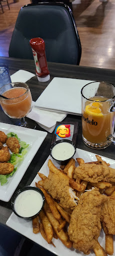 So my husband and I walked in and weren't sure if we seat ourselves or what area of the establishment was open to sit. No one greeted us when we walked in it was kinda odd people just stare at you. I guess you could tell we never been there by the looks as if we were the odd couple who stuck out for sure Lol! We finally decided to just grab a table and sit, wait for someone to come over. The young girl made her way to our table asked if we would like something to drink or did we need a minute. I told her I needed a moment as I was looking at the drink menu which was nothing to brag of nothing seemed worth trying really. I told her I'll have a margarita flavored she seemed confused so to keep it simple and not make it hard just a regular margarita please, over the rocks she asked, no blended. She didn't seem very outgoing for a wait staff person very dry and shy. Didn't suggest drinks or anything. We ordered our food my husband asked for wings sloppy extra and they were dry hardly any sauce on them at all. So asked for the extra wicked sauce that came in this little round container that usually holds ranch dressing. Definitely afraid to give sauce on the wings. Fish n chips were pretty good and cole slaw was tasty enough as well. Mid way through our server finally seemed to come out her shell a bit more checking on us. I received the bill and to crack a joke at her my husband and I asked if they took EBT she finally laughed made a joke back and walked away from laughing at my husband's comment. The bill was like $74 bucks so left her $13 tip not because the service was worth it but I understand working for tips as I work in a casino but also know it's called customer service for a reason. I definitely know that I won't go back to that location ever again. The location on longley by far hands down knows service and suggestive sales depending on...