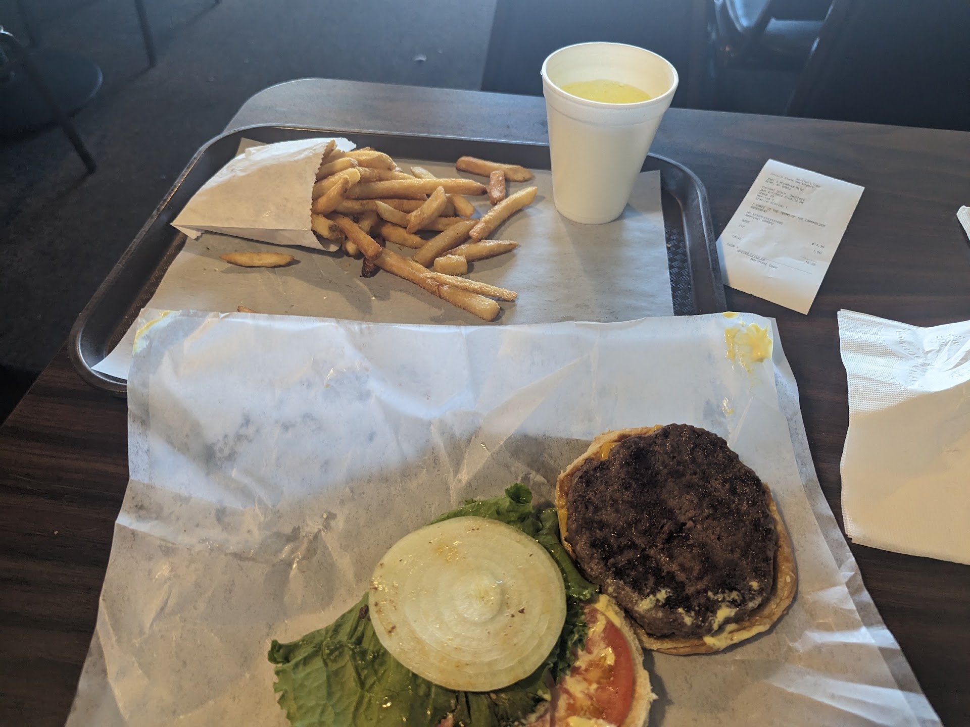 I ordered a double cheeseburger w/ bacon, large fries, and a medium drink. $16? Wow, this had better be a good.
