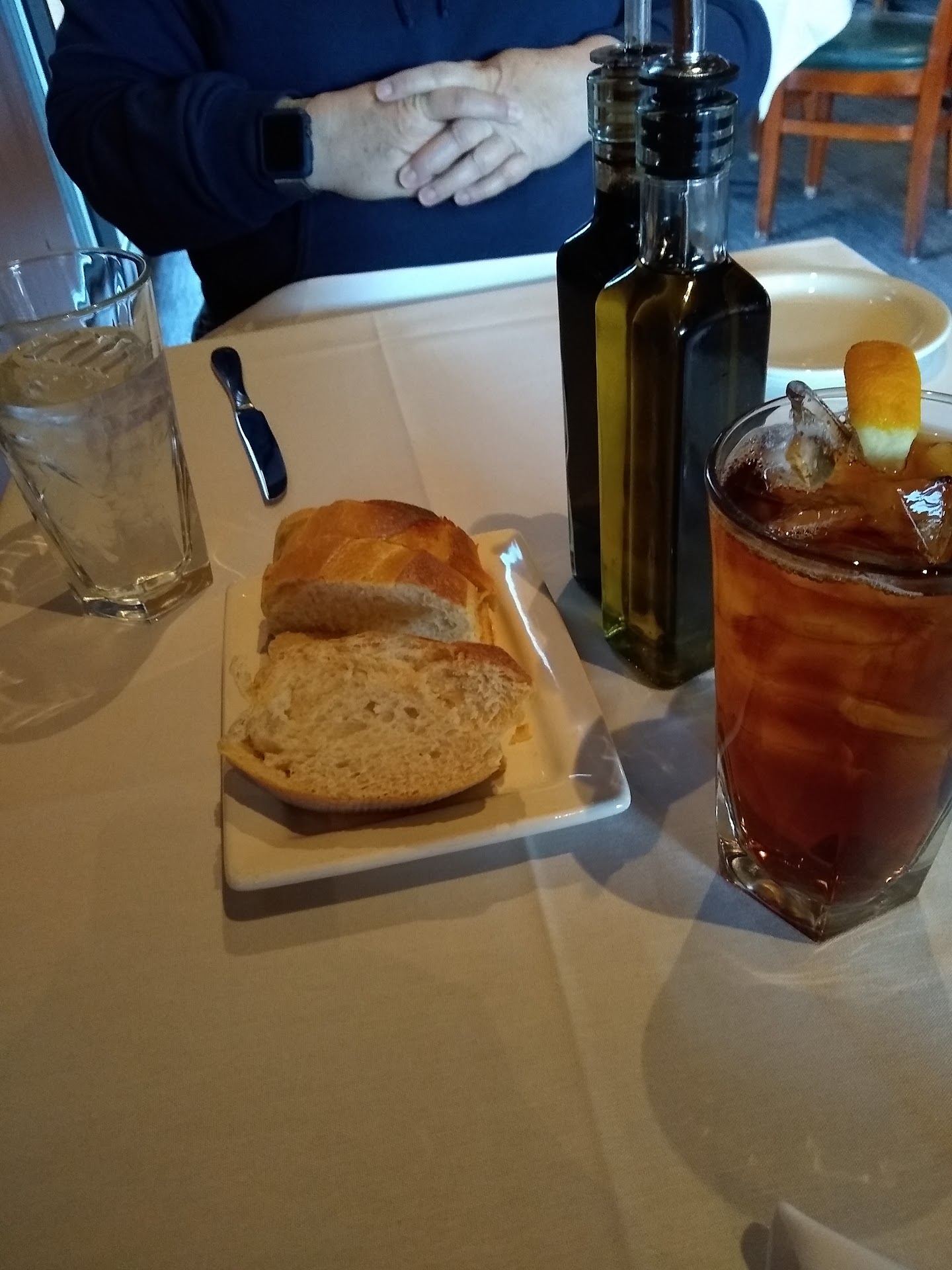 To make matters worse, someone spilled a white sauce on my husband's black coat. We only found out because our waitress noticed it as she walked by. She noticed it because there was a lot of sauce on his coat!