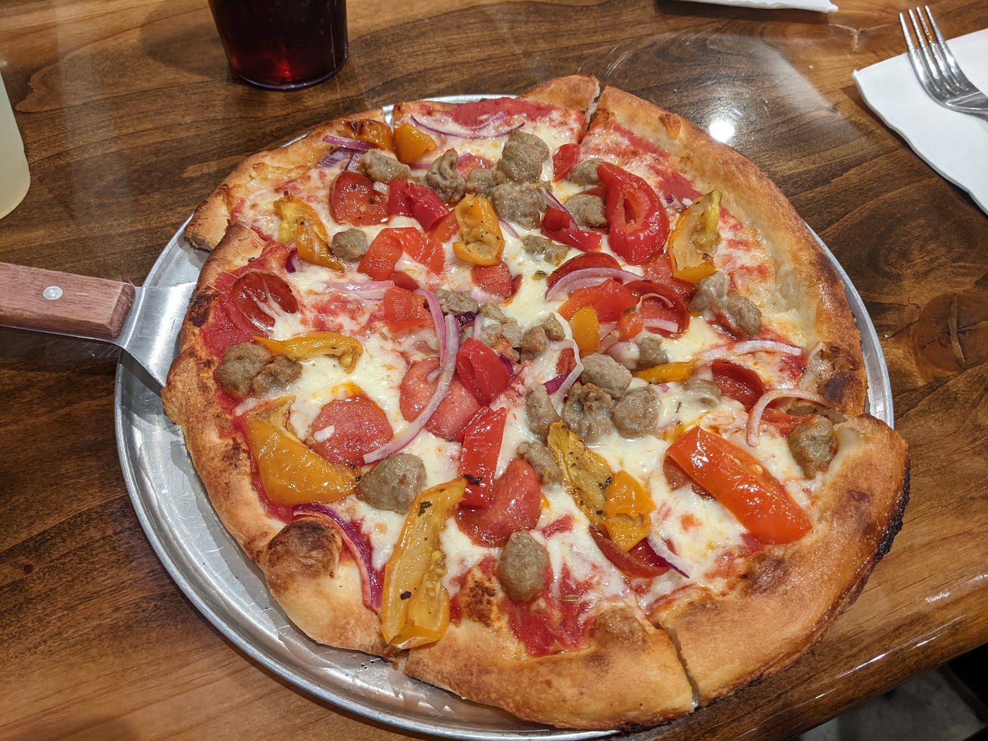 Read moreTook my son here on a Friday night around 5:30pm. Place was packed. We were able to pick up a couple of seats at a larger table we shared with another party. For as busy as it was, the food came out quickly and it was nice and hot. We just ordered the Mack Daddy Pepperoni and I got a beer wristband. I loved all of the options for the beers! The staff was friendly and plenty of them were around to help clear tables and check on people. A lady came up to us and offered me a sample of a cocktail they were promoting. I forget her name now, but she was so nice and shook my hand and thanked us for coming out. Maybe the owner? I told her that we loved the food and my son is a pizza fanatic! We are excited to bring my husband with us when he gets back from an extended work trip. I am eager to try new menu items next time we go. It was difficult to find a table and still a little chilly to brave eating on the outdoor patio so maybe get there early before the rush on weekends or try during the week. We...