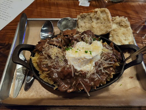 Read moreFrom the modern decor to the many menu options to choose from, this place does not disappoint. I got the PRIME RIB STROGANOFF $13 prime rib / wide egg noodles / parmesan / mini basil parmesan loaf A pint of the Firestone 805