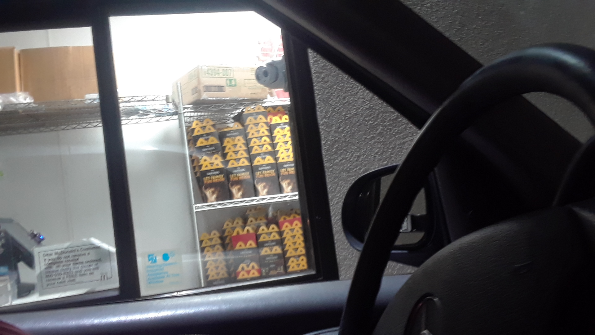 We went on a Thursday night at around 9pm. The lady at the counter had a frown on her face that no amount of niceties could soften and saying thank you did not get one single your welcome. The entire kitchen area was flooded with soapy water as they were hosing down the floor while making food. Something that seemed to me to be unsanitary, but my husband and youngest son were too hungry to care about at the time. The Sprite was out of syrup, but the blue Powerade was yummy. The food all seemed delicious after our five hour drive, aside from the fact that the fries weren't salted which was an easy fix. A plus among the negative was that the ketchup dispenser was awesome! You flipped a nozzle and it poured out until you flipped it back! Awe, if only every McDonald's had one of those! That, and the spinny coin collector are the only reasons I didn't give this McD's less stars. We all had fun putting coins down the chute and watching them spin their way down and into the collection...