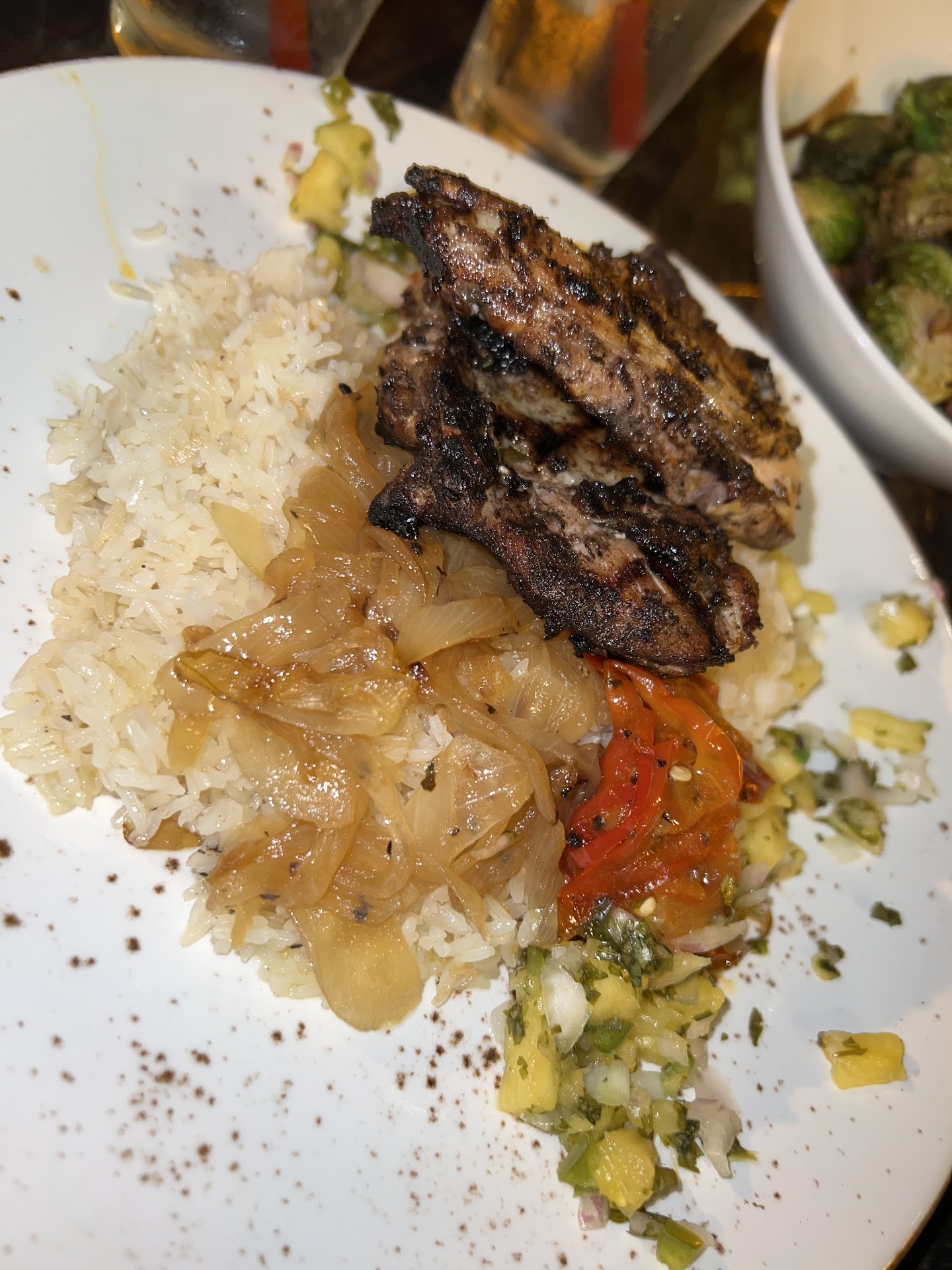We felt our dining experience was sub-par to average, because: Soup was less than hot when served. In the main course, mashed potatoes and stuffing had started to crust over. Top of turkey was dried out. We suspect entrees with sides were plated by kitchen well in advance and sat under heat lamps too long. The plate was as hot as the food. Food presentation was sloppy. Soup drips were on rim of soup bowl. Main course sides of yams/stuffing/bean casserole were overlapping each other looking rather messy. Kitchen was skimpy on gravy, which barely covered the mash potatoes. We asked for additional gravy so that we could have some to go with the stuffing and the turkey. Some inconsistency in servings. My salad had 8 grapes (yes, I counted). My companion's salad had 2 grapes. My turkey dark meat (main course was turkey duet: light meat and dark meat) was served as a scoop of shredded slivers while my companion's dark meat was fortunately discernible slices of turkey drumstick meat. Dessert choice of Gelato was a flattened "splat" instead of a rounded scoop, served in a disposable oversized black plastic (WHAT'S GOING ON???) bowl with a fork stuck in the middle. Was the restaurant out of spoons? Upon receiving our check, we noticed we had been charged for a milk and a soft drink that we did not order. The waiter looked a bit bewildered when we asked for a correction, but agreed.