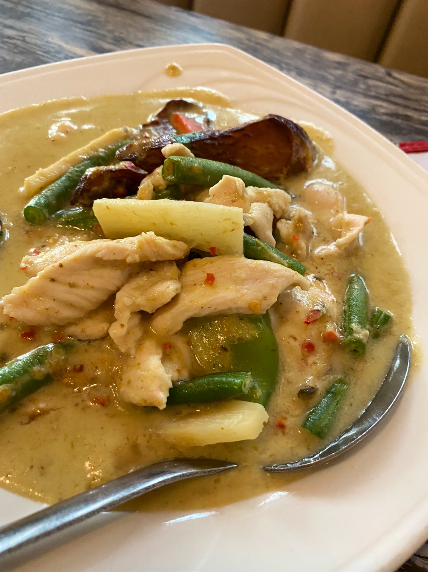 For my entrèe I ordered the classic chicken Panang curry with white rice. I was pleased at the size of the bowl of chicken curry until I noticed that most of the contents were actually cabbage. Personally, I don't want cabbage in my curry. Notably, I've never had cabbage in curry before elsewhere and now that I've had it, I'm not keen on it. I'll have to pass going forward.
