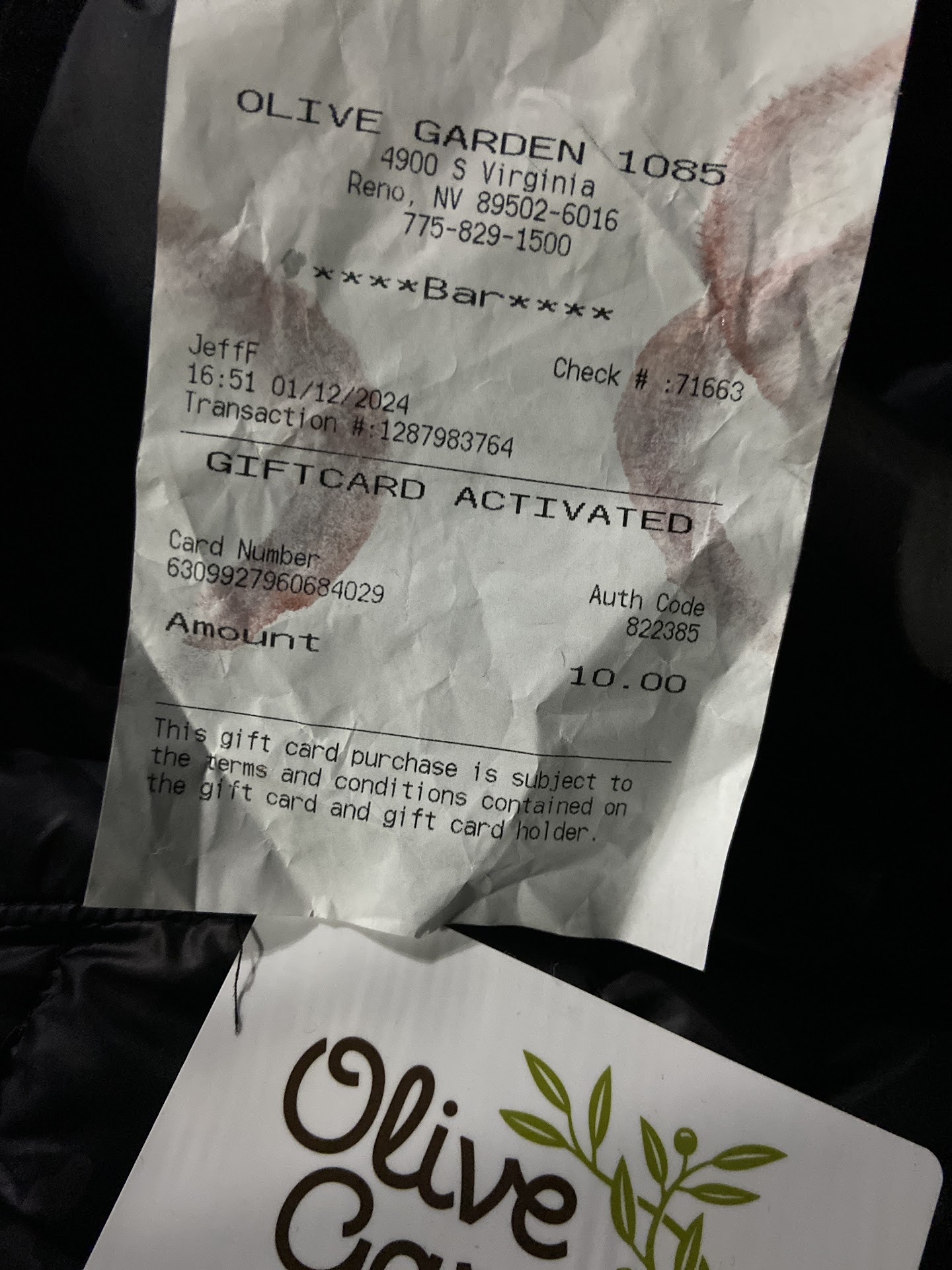 Read moreLast year for Veterans Day we visited Olive Garden and had a fantastic experience, so we were excited to go again this year. I'm really disappointed though that this was probably some of the worst service I've ever had. We went in knowing that it was a busy day and that we were bringing kids. So we went early, around 3:30, to avoid the dinner rush, and we planned to wait a little longer and tip well for the trouble. Our server Avery was dismissive at best and borderline hostile at worst. Her smile disappeared the instant we asked for a Veterans menu and when my husband asked to order something from the Veterans menu and then an additional entree, she cut him off mid sentence to say that he wouldn't get both meals for free, something we never asked for or insinuated. My four year old mentioned that he was thirsty and wanted water, and she snapped at him to be more patient because she had a lot of tables to take care of. We were actively ignored for the majority of our time there, aside from the occasional huffs, eye rolls, and deep sighs as plates were cleared and water was refilled. We also received the stray comment of "I'm so over this" and yeah... we noticed. There were also table games added to our bill, which probably wasn't our server's fault (although it is super sketchy), and when we asked for the charge to be removed she pushed back that our kids had been playing games. Which I guarantee they hadn't, because as soon as we got to our table I moved the table top game thing so it was impossible for them to reach. I understand that Veterans Day can be a hectic day and that kids can be frustrating, but I expected to be treated with at least the common courtesy you would extend to a stranger, let alone a customer. I was especially disappointed because, as I mentioned before, we had a fantastic experience last year and were looking forward to visiting again. But unfortunately, I don't think we'll be back to Olive Garden next year if we ever come...