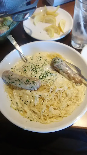Absolutely inexcusable poor customer service from hosts. And manager wasn't much better. Great food. Great service from Ty? Tyler? Younger red haired guy. Let me elaborate~ Four family members & myself arrived on Sunday Feb.23 about 6:20pm, including two kids. No greeting, no welcoming, nothing from the not one, not two, not three, not even four, but FIVE hosts standing at the podium. Three females, two males; I'd refer to them as women and men, but women & men deserve respect. They were all too busy talking and giggling like high school children gossiping about a crush, to do their jobs. We had to walk up to the podium to be acknowledged on any level, and even then all we got was "five?" No "Hello", no "Welcome in", no "How's it going tonight?", just "five?" Slumped over, and smug attitudes, like they were bothered to do their jobs. Despite five hosts standing there doing nothing but rambling about personal things instead of doing their jobs, it still took a good minute for at least one of them to grab five menus. And when one of the males(younger, blue shirt, black hair) finally did, he didn't say "follow me please" or "right this way", he literally said nothing and just started walking. He made no conversation during the long walk to the back of the restaurant. Nothing. No "elevator chit chat, no "how are y'all doing this evening?" Nothing. When we got to our table, which no joke- was two small tables pushed together DIRECTLY next to the loud & messy kitchen entrance- a clearly unhappy relative asked "Do you like this, or somewhere else?" I said "It's right next to the kitchen...that's tacky. And it's gonna be loud all evening, but there's no where else to seat 5 right now, so let's just sit" The rude host heard all of this, and did not ask if we wanted to wait for another table, did not 'apologize' for nothing else being available, nothing. And he took the cake with throwing the menus on the table. Not joking, check the camera- they're supposed to be set down, especially the kid's ones with the kids in our party, but he lazily & rudely threw the menus on the table, and walked away. No "Your server is so & so and will be right with you", no "Enjoy your meal", no "Have a nice evening", nothing. No conversation for the entire walk, terrible table, no communication about our server, and threw the menus like an unprofessional & lazy a__hole. Ty or Tyler [(apologies, can't remember. Younger, skinny red-haired guy)] was great. Right off the bat-he acknowledged us and said "I'll be right with you guys." He was professional, yet friendly, funny, informative about the menu, and attentive throughout the entire meal. The food was great. It was made correctly, piping hot, and absolutely delicious. I absolutley recommend the chicken & carbonara, and the stuffed chicken marsala. We paid the bill, Ty/Tyler saw me typing on the tablet on the table, and asked if everything was alright. And I was honest and said "with you, yes, with the hosts, absolutley not." The experience was explained, and he took the concern seriously, and actually seemed to care. On our way out we encountered the manager(skinny male with dark hair), the experience was explained, and he seemed like 'okay, I'll stand here and nod so you'll shut up & leave already'. Poor management results in poor employee performance- as our dinner experience proved from the hosts & manger on shift Sunday evening! Props to Ty/Tyler for his waiting service. Props to whomever cooked Sunday evening. Hosts Sunday evening need to be fired, or smacked upside their lazy & rude heads and taught what the Hell customer service is. We...