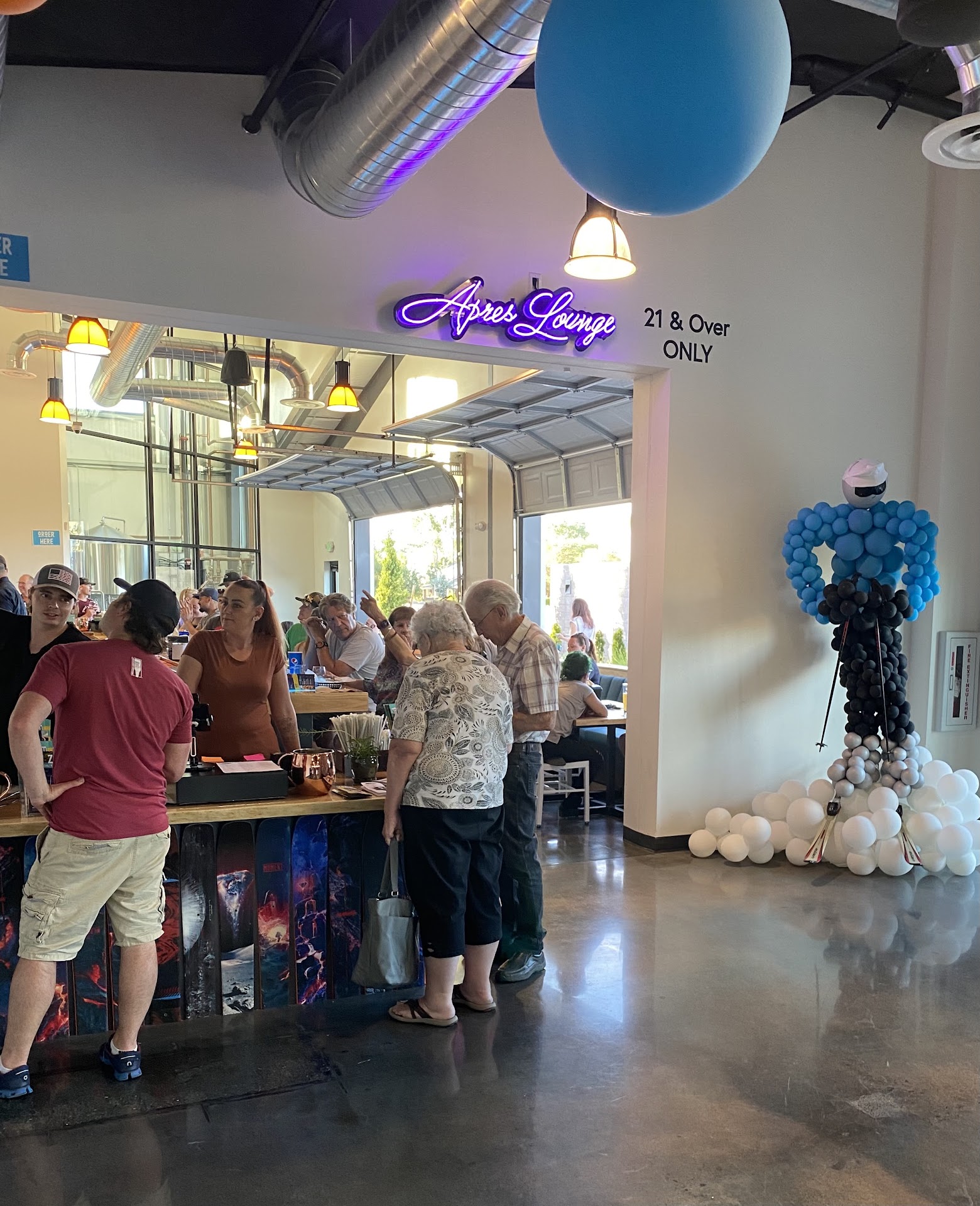 When you order your food or drinks, they call your name and you pick it up yourself. No waiters/waitresses to bring your food or drinks to you. The staff try to be quick to clear tables to open up more seating. They have an area for kids to play, with blocks and ring toss type of things, as well as a TV playing kids shows. Seating can be an issue if a youth or adult baseball/softball/soccer/etc game just got over. But they have a 21 and over seating area as well, plus outdoor seating as well as more seating upstairs.
