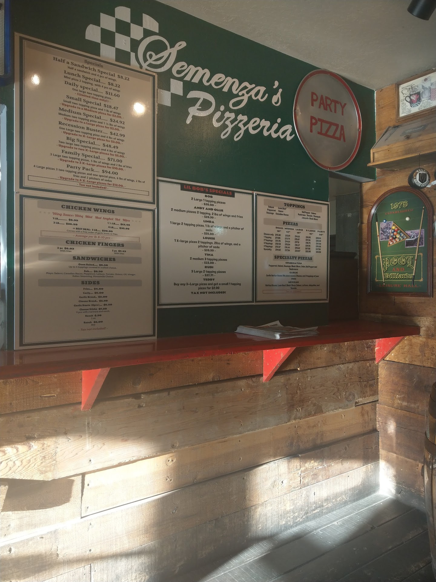 Read moreTheir prices are unreasonably high except for the Bob special. Forget the wings. They're far too expensive considering what you get. While everything's tasty, it's not worth $75 to feed four people. They put fewer and fewer toppings on their pizza. Good luck getting more than 15 slices of pepperoni on an extra large. Hamburger and sausage toppings are almost non existent on their pieces. I deducted a star because THEY WILL NOT ANSWER THEIR PHONE. I know the store is open. Most of the time it will ring and ring and then go to a mailbox that's always full. I've eaten on and off at Semenza's for 30 years. I take no joy in writing this review. I'll revisit them in a few months and update my review if things change for the better. They can do better and should or this Reno institution will have to shut its...