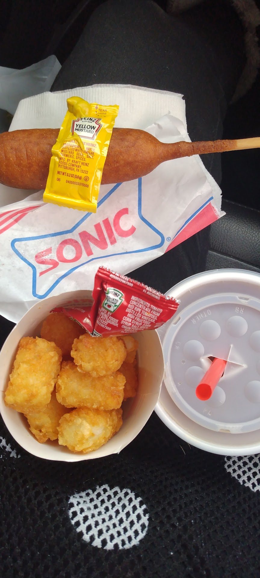 Anyway i get my order and the tator tots were served cold and nasty and what ever size you order you will get the next size down i ordered a med. and got a small-something i recall from previous trips there, i ate 4-5 , gave up and went to try and get my taste buds to forget what i just fed them with some onion rings, they were hot but i frankly didnt care.