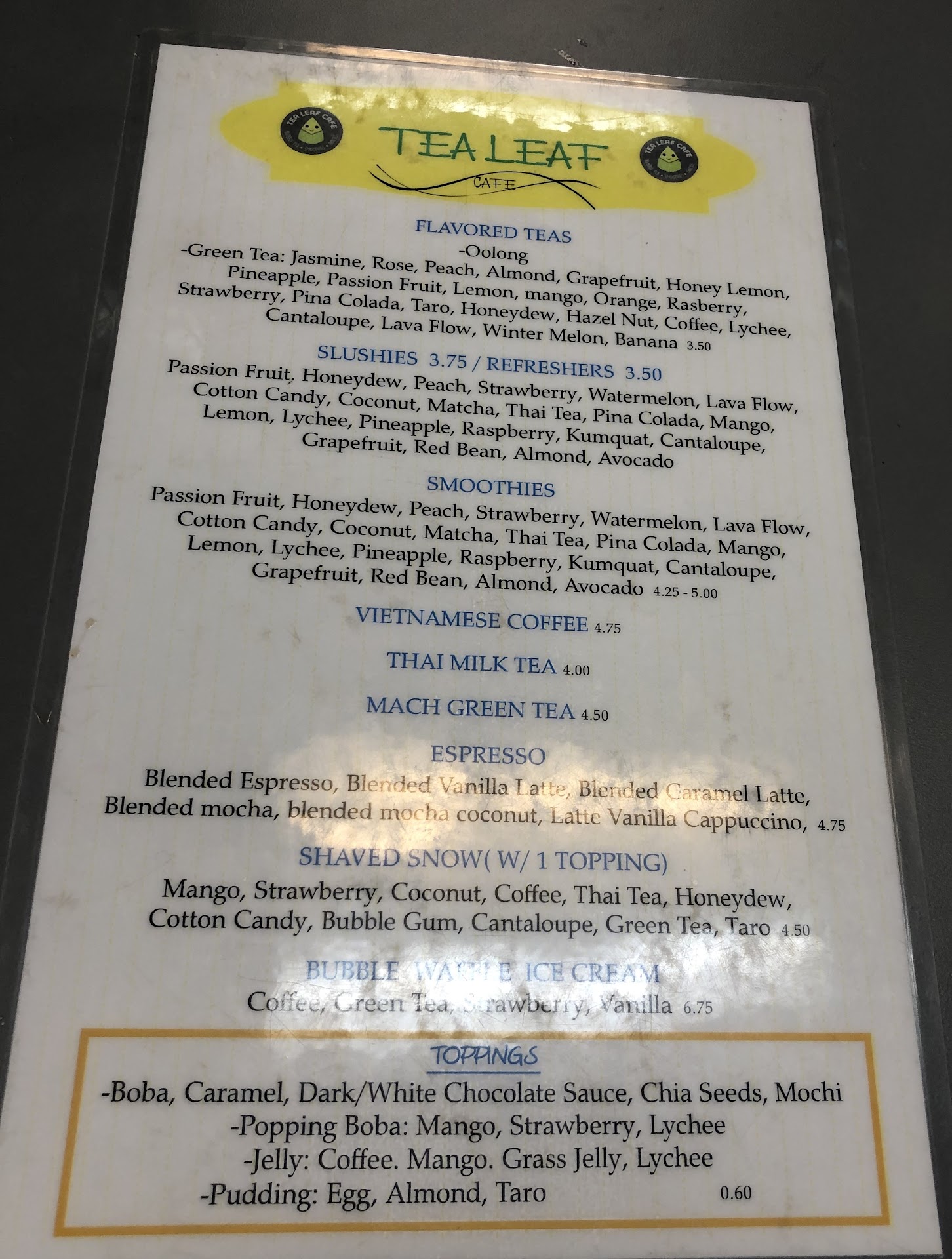 I was very excited to try this new tea spot as it is close to home and very convenient. I kept waiting for them to open up and when I finally went in, I was pleasantly surprised. I got a grapefruit refresher and my friend got a caramel frap. Both were meh - we felt like we should've tried actual teas. My drink did not have much flavor and the boba recommended to go on it wasn't actually a good pair. I cannot speak for other drinks, as I will have to come again and try them, but this one wasn't as good. Also, the lady at the counter did not explain well to me what the difference between a tea and a refresher was. So I just went with her telling me to try it. The decor inside is nice and clean. They even have board games and a couch to play. I will be back but I think I'll be sticking to the...
