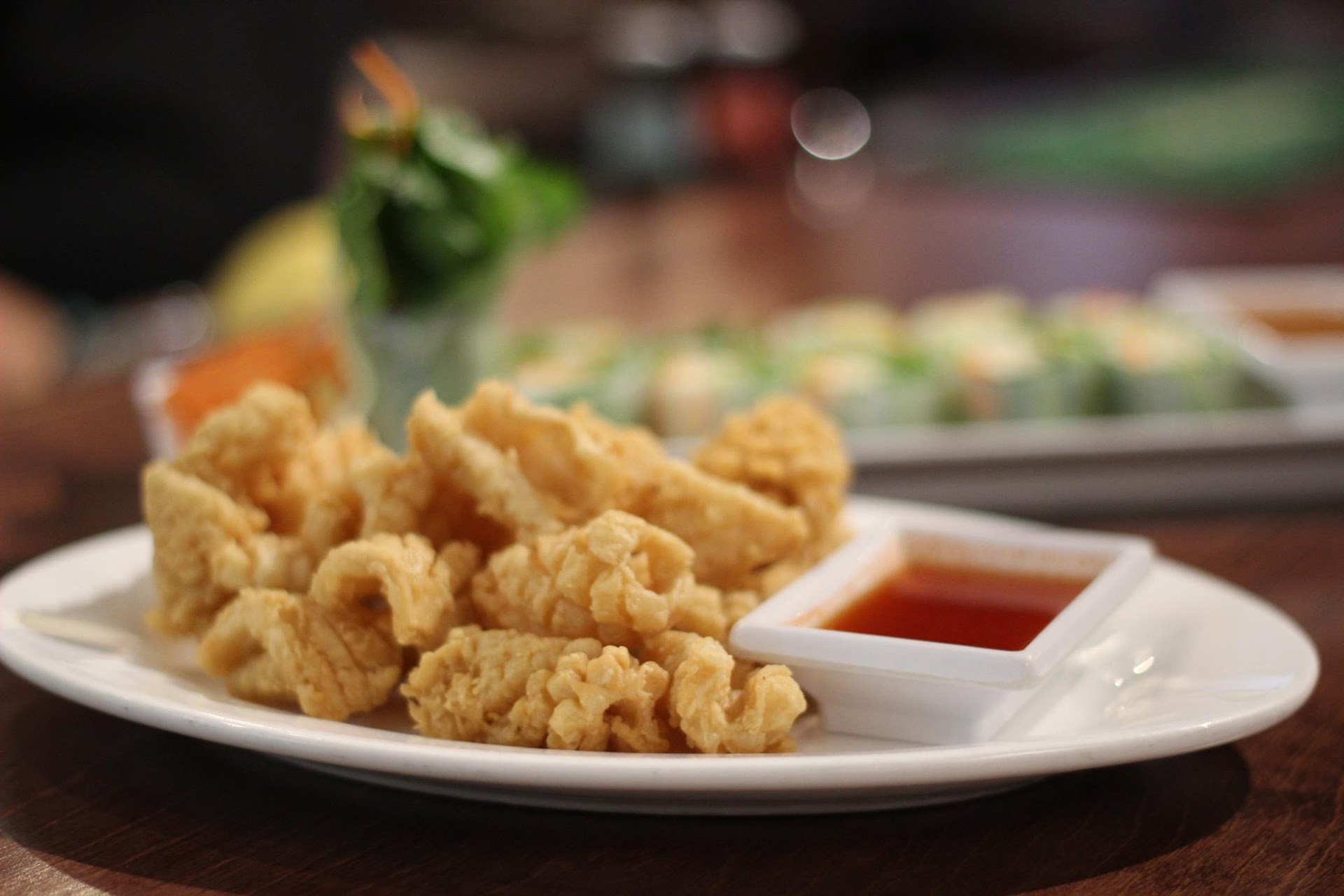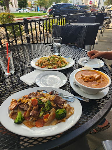 My husband will never let me hear the end of it as it was my turn to choose, and we came here for dinner one Saturday night. We lived in Asia for many years and are used to spice and the amazing flavor of Thai food. Restaurants usually let you know that certain dishes are spicy and give you the option the bring the level down. Here the young servers didn't explain anything, particularly that you start at zero spice and can request a high spiciness level; as a result, we ended up with a bland selection of food. The presentation was pretty but were let down dish after dish. Papaya salad was more of a garden salad, the eggrolls seemed to have been fried frozen but not given enough time to cook inside, and a chicken dish had fish oil as the dominant flavor. The staff only came to the table when dropping off or picking up food. I think the place has a lot of potential, great location for business lunches, nice people, pretty space. I wish I could give it...