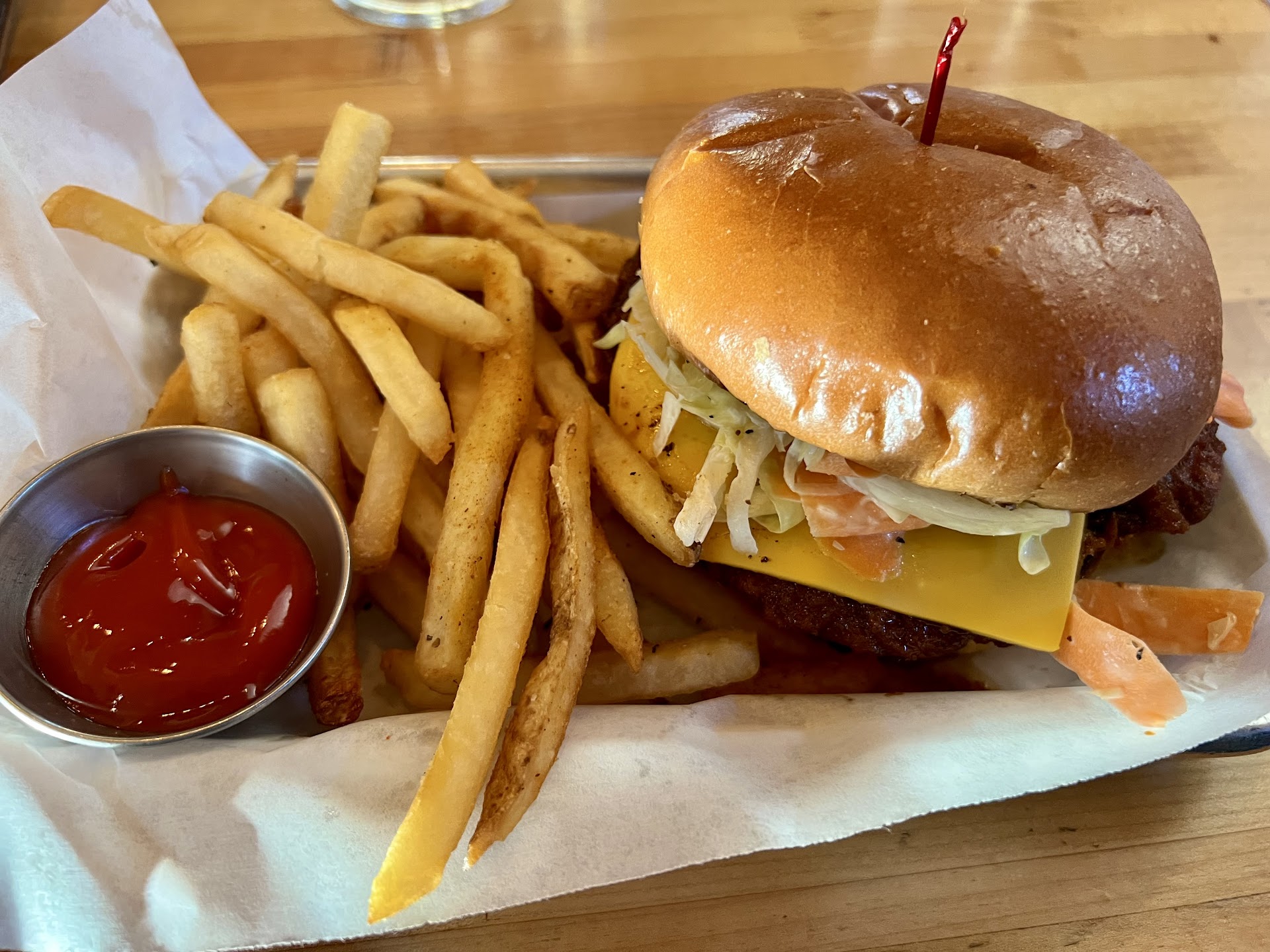 We had an order of wings and they amount for one order was plenty enough for two to share. They have two flavors a bbq and buffalo. The bartender hinted that we should mix the sauces and he wasn't wrong. Really good wings, it didn't have the crunch but the flavor was excellent. The massive burger that I had was called the depot deluxe. It had a tangy bbq sauce, bacon, jalapeno cheese, and four beef patties. The bread could hold the amount of meat that was offered. It had a great taste, the meat was just a bit dry. Other than that, if you want to be wheeled out in a wheel chair. Get the burger, if not, then still come for the awesome...
