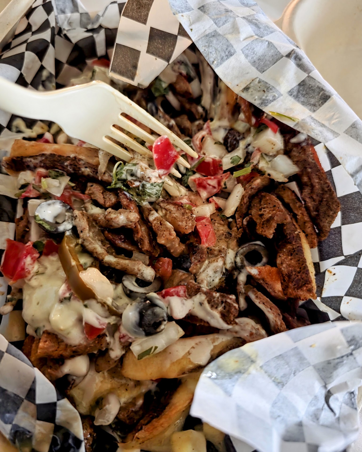 Read moreWe found this place through Google Maps while craving shawarmas last week. Though high ratings can be misleading when a place's name and menu don't look authentic, we decided to give it a try. Unfortunately, our experience was disappointing from the start. The employee was short and rude, and we noticed the tiny kitchen had no traditional shawarma equipment. Despite having only one customer eating in the common area, we waited 20 minutes for our order. The shawarmas bore no resemblance to authentic ones. The cold 'beef' seemed more like liver or some frozen, pan-seared meat, and the chicken was equally cold and unappetizing. They overseasoned everything with so many spices that it was impossible to identify what we were actually eating. While the fries were served warm, they had an unpleasant smell from overused oil. I will not go back there because I am unable to forget this...