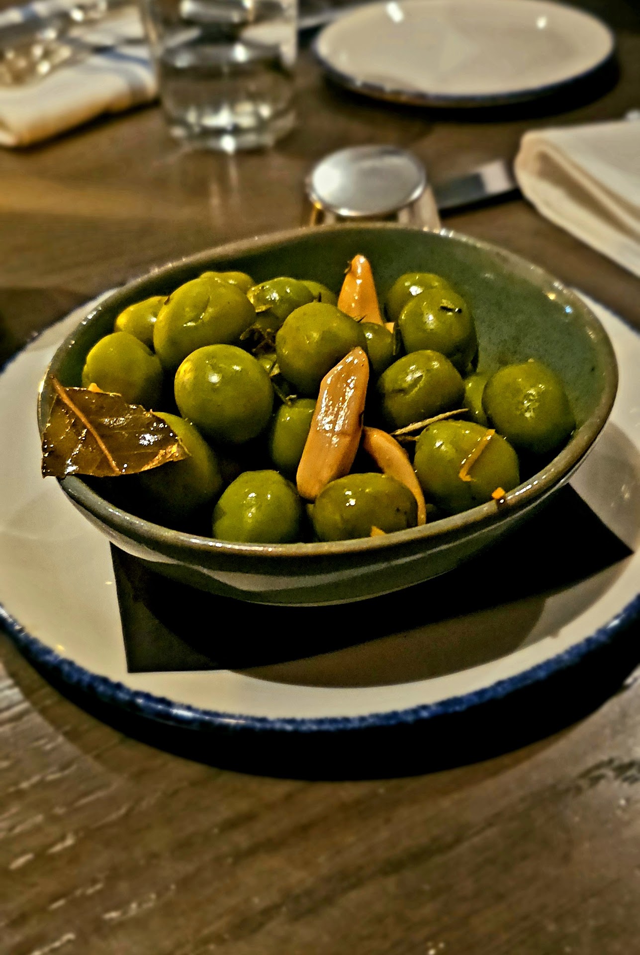 We started with the Marinated Castelvetrano Olives. I'm not an olive fan but they were mixed with whole garlic that was delectable. Both were made with a morita chili and urfa pepper but there was no heat. The olive lovers were very happy with both the garlic and Olives.