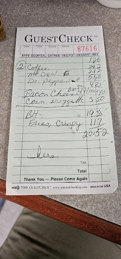 Service is honest and up front, conversation is cheerful. Staffing is noticeably rough so be patient, the food is worth it with a price that will make your jaw drop. Cost us roughly $21 for a BLT (packed to the brim) a Bacon cheese burger with all the fixing and thick cut bacon. Crispy French fries and corn nuggets. A 2 bottles of soda and good cups of coffee.