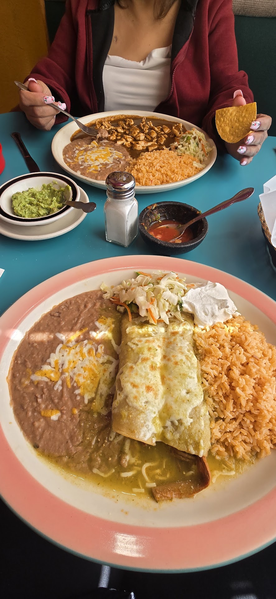 Me and my mom went here on may 12th for a late lunch around 4 pm. I ordered the green beef enchiladas (I substituted the ground beef for regular beef for an extra $1 which actually ended up looking more like carnitas aka pork), and my mom got the chicken mole (which the server told us was chicken breast) Both of us got food poisoning afterwards. I got sick, started sweating and vomiting, and had such horrible stomach pain (like to the point I couldn't sit stand or lay from the crazy pain) into the night that at 2 a.m., I ended up at the ER. My mom's on dyalsis and this was supposed to be a nice after treatment get together, especially because those procedures are so tiring, only for her to also end up at the hospital that same day, I spent $58.87 plus a $10 dollar tip only for us to both get sick.