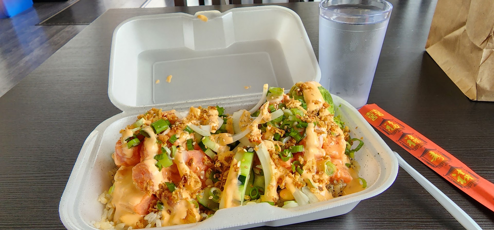 They really load you up with large helpings of protein. I usually get their Spicy Ahi Tuna Plate (Bowl = 1 scoop of protein, Plate = 2 scoops) with plenty of onions, guacamole, cucumber slices, and sometimes some kimchee. They have a decent amount of toppings to choose from, but probably not as much as other area places (such as Just Poke). However, I've never failed to assemble an OUTSTANDING bowl each and every time I'm there. You can also pick from one of their really tasty prefixe bowls.