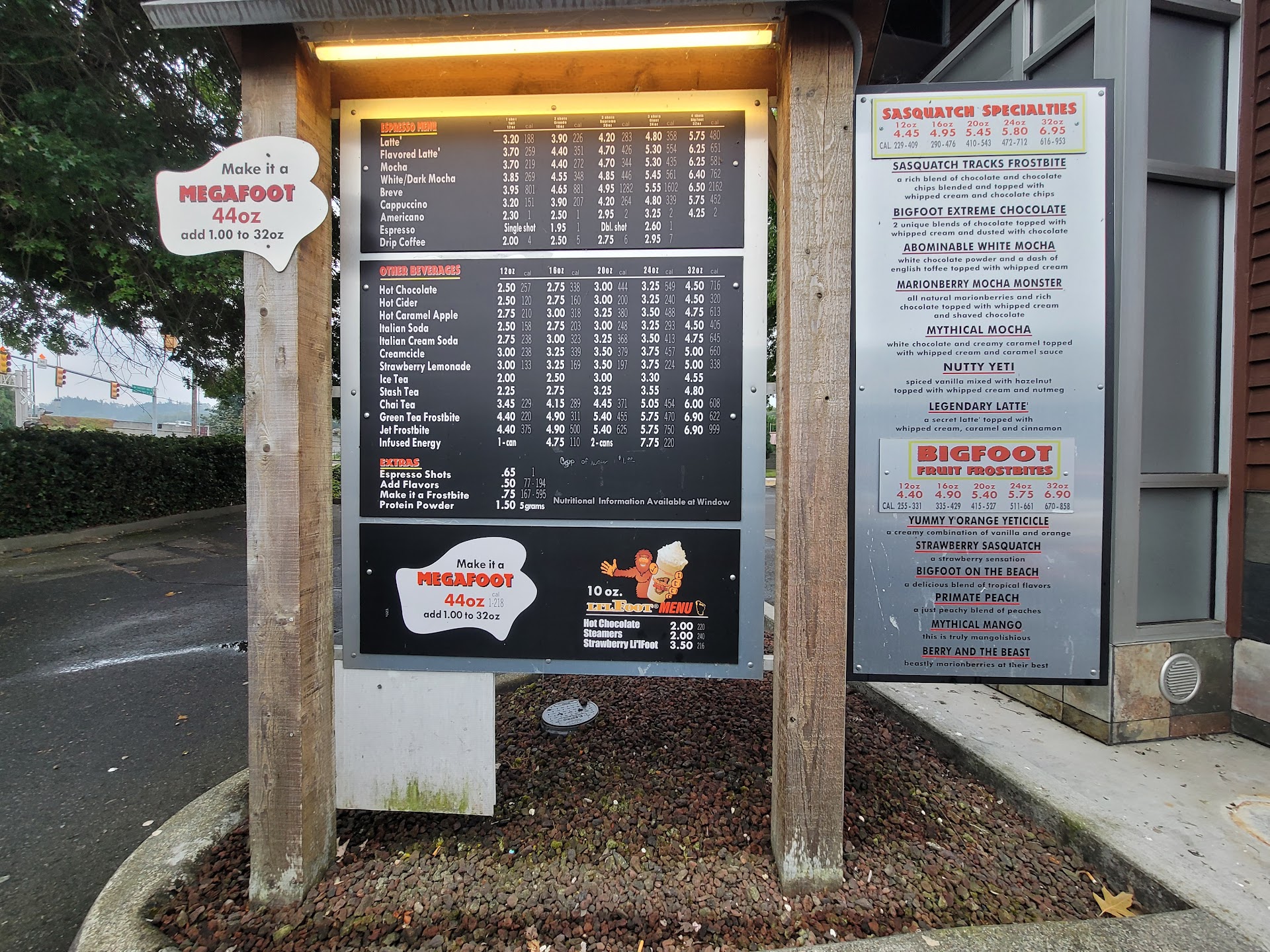 Read moreToday around 1pm my grandma and I went to this BigfootJava location. We come to BigfootJava all the time i’d say Im a regular but usually go to the one in Seatac, and i order the same drink every single time( a customized drink). So the manager of this location was outside taking orders, and when it was our turn my grandma ordered a hot spiced chai latte, and i ordered 2 caramel almond frostbites with extra caramel drizzle and whip(the same drink i get every single time that has NEVER once had coffee in it), when she read back the order she said “one spiced chai latte, and two caramel lattes with almond, whip and extra caramel drizzle” I said “no two caramel almond frostbite's not lattes” she responded with an okay. we drive up get our drinks everything's fine the workers were nice. We go to the corner store right next to the Bigfootjava and i taste the 2 caramel almond “frostbites” and they had coffee in them, so as we’re pulling back up I see the manager VAPING on the side trying not to be seen, she goes back inside and we’re at the window then my grandma states that we didn't ask for coffee, and the worker at the front window says shell take them back but we have to pay for new drinks because thats what we ordered and my grandma says she is not paying for new drinks because of a mistake they made, then the manager comes to window and starts going back and forth with my grandma and raising her voice, i butt in and tell her i repeated my order to her twice and she said okay therefore its her fault, and she continues to go back and forth, then the worker comes back and says her manager said we need to pay and my grandma and I say that we’re not paying for a mistake on their part, so the manager with an attitude says fine we don't have to pay but we cannot come back to this location, all because of a mistake she made on my order when i clearly corrected her. HORRIBLE CUSTOMER SERVICE AND I DONT...