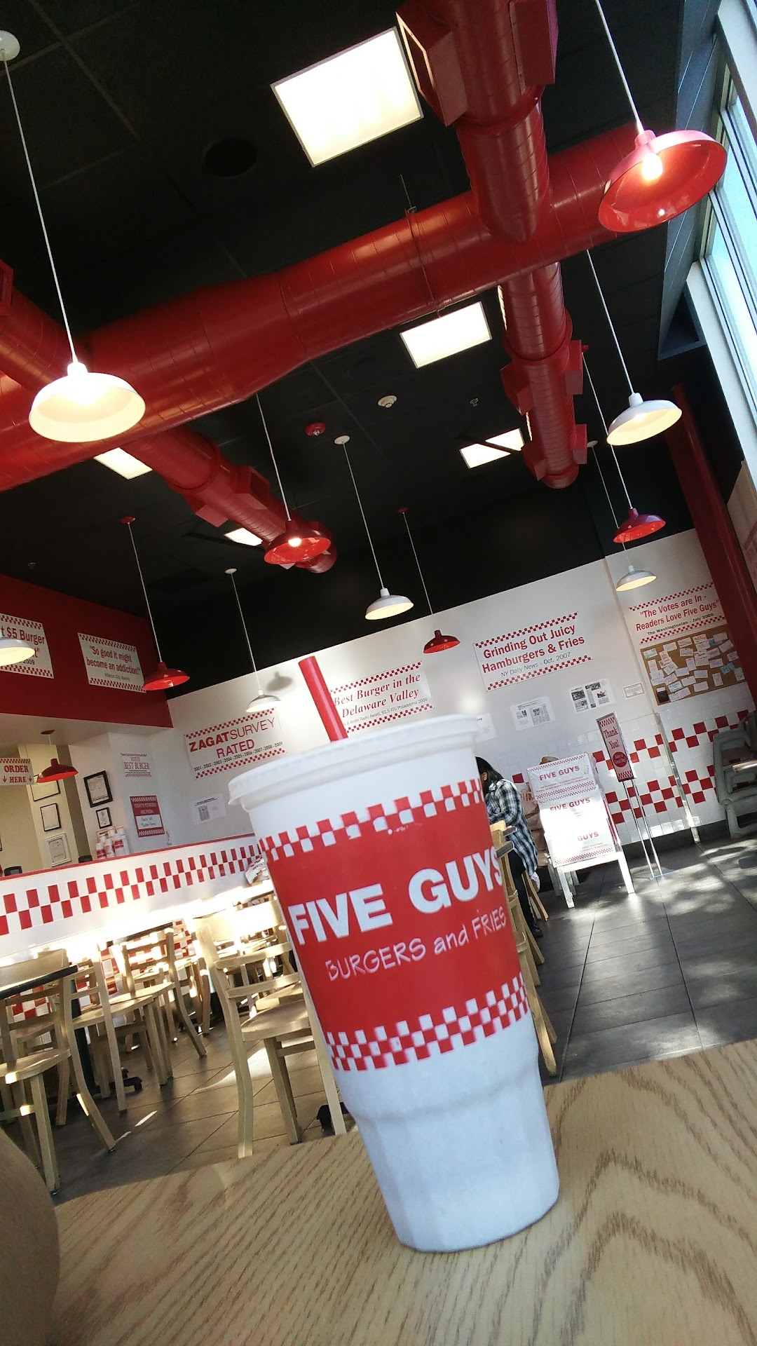 Read moreGreat burger place. This was my 1st visit to a 5 Guys since the opening of this chain restaurant in Champaign Illinois sometime on/before 2012. I remember that restaurant was jammed with people. Hardly any empty seats at the time. Everybody looking like they were enjoying the menu items. As fast as someone left there was another to take their place at the table.