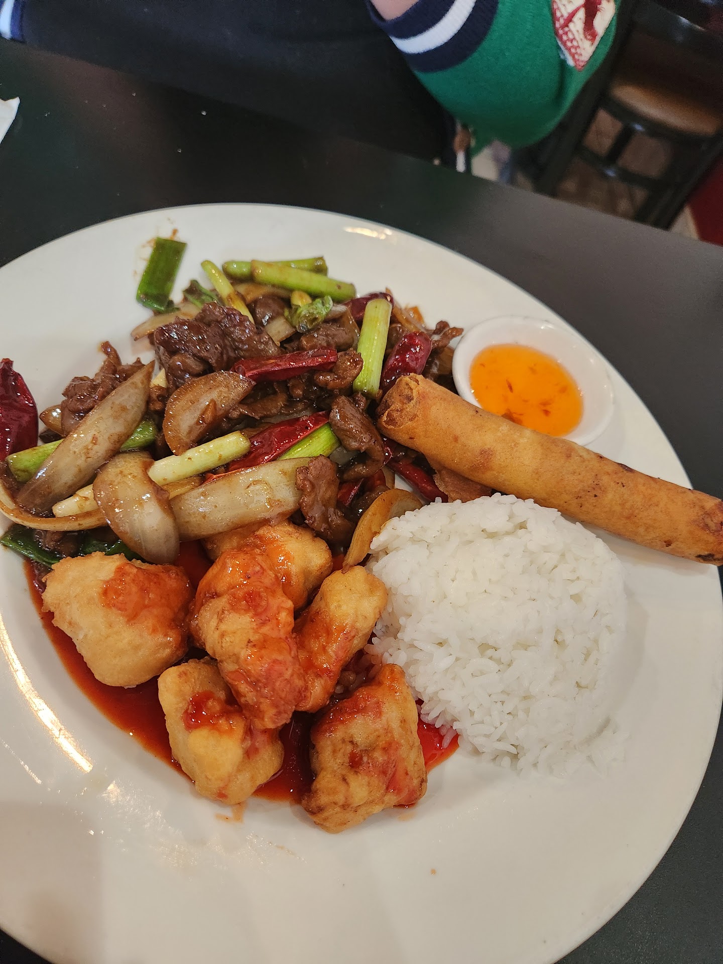 My boyfriend and I are were looking for some lunch specials in Renton and mu boyfriend chose Fortune Noodle House out of the options that I had for him. We arrived here and there was only one other table occupied. We were greeted by the cashier/hostess/waitress who let us pick our table and dropped off some menus. I noticed the lunch special menu wasn't included and had to ask the waitress if they were doing a lunch. She brings over the lunch menu and tells me that they only have combo 2 and combo 3 so I went with my combo three while my boyfriend got the Single Dinner combo 2.