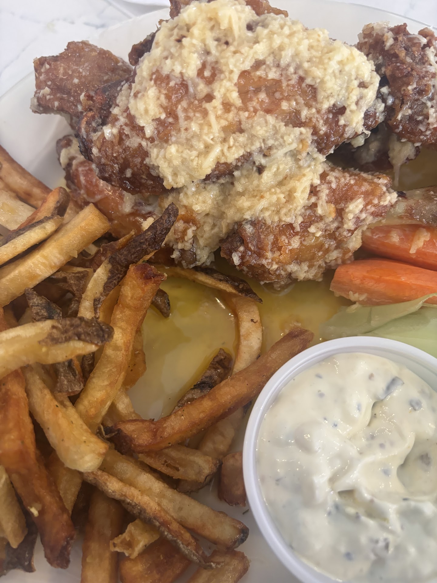 Read moreCame here for the second time. The place was clean , music was great, vibes was doing what they supposed to do on a Friday afternoon. The service was great absolutely no complaints there. Only issue was the food. The wings are trash. No seasoning no flavor. If you don’t season your wings the only thing you taste is the frying oil. The first batch came with a plate of oil. There are some places locally (Burnett’s Pub) where you can get an idea of great wings and mimic. Also the fries were hard, stale even?? There was a gentleman behind me struggling to order food maybe because the food isn’t great here. Location great, service great.. imagine the kind of revenue you could bring in if the food was actually good. You have an entire commercial kitchen Lets go! Like any place I go to I come for the food and I’ll stay for the drinks. Lot of good things here hopefully they can iron...