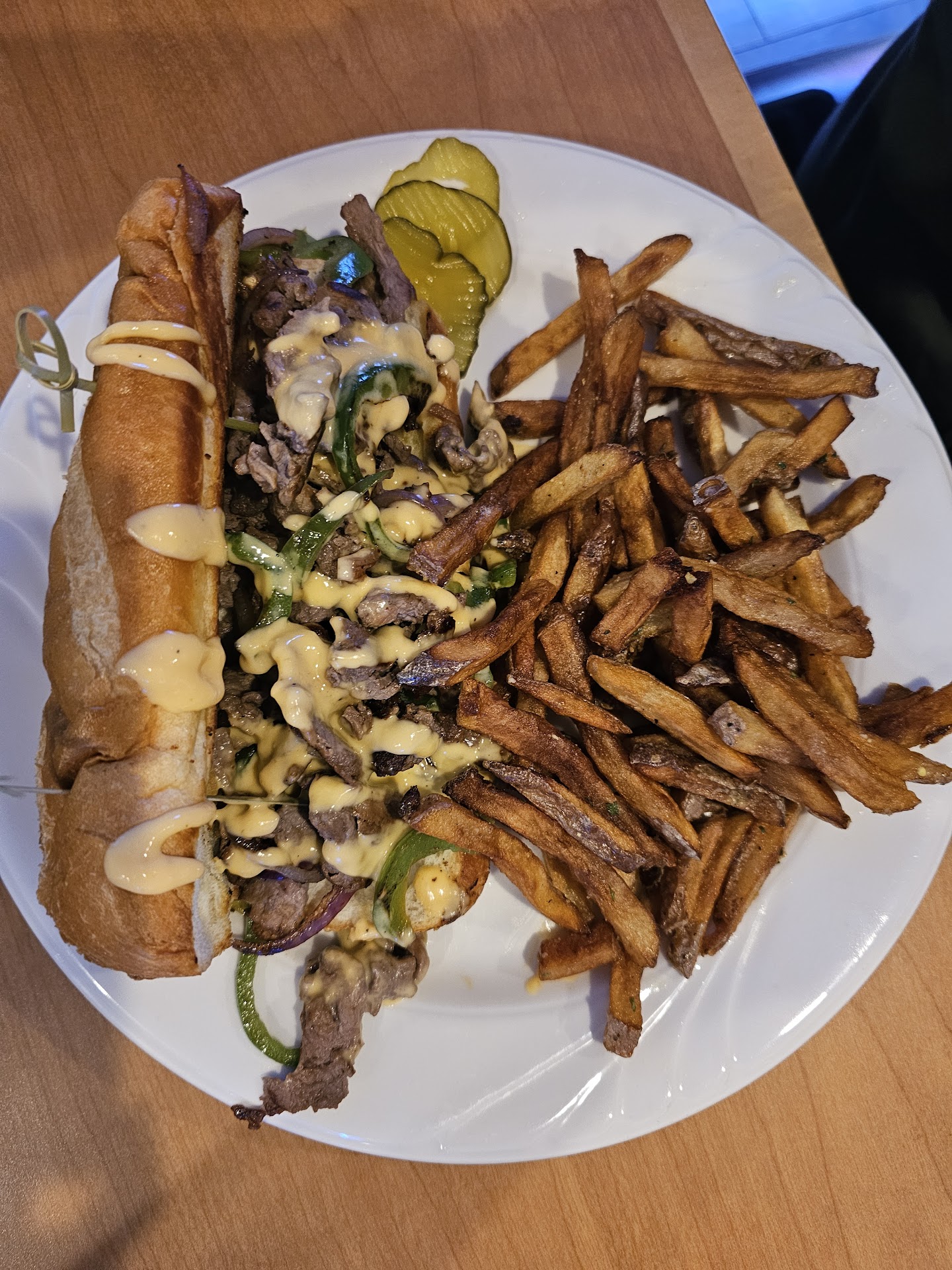 Food: I had the Grilled Chicken Burger, and my husband got the Philly Cheesesteak Sandwich—we both cleaned our plates! The fries were finger-licking good, too.
