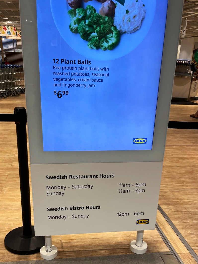 Ā Ā Ā Read moreWe come here often enough and the experience always varies. Last night still isn't sitting well with me. The food is always good and warm, a nice selection when things aren't sold out, but I'm not picky and will take whatever. The customer service is always on the irritable side from them having to repeat themselves over and over. Things are sold out and people can't hear them, so it's a rinse and repeat of "what would you like for your side? we're out of mashed potatoes," "oh, mashed potatoes please š," "....we are OUT of mashed potatoes. š" I feel bad for the food court employees because lots of customers aren't very understanding/forgiving. The only sour feeling from last night was the cashier who snapped at me because I didn't position my phone properly to be scanned for the Ikea family thing. I apologized and they rolled their eyes, and grumbled my total. We went to find a seat and when I went back over to get condiments and silverware, I looked up briefly and was greeted by a scowl and another rolling of the eyes from the same cashier at a distance. I understand that food service is not a fun job customer service wise, I work retail, it's similar but more forgiving. However, it is well known that you save your frustrations for a customer that deserves to be snipped at.