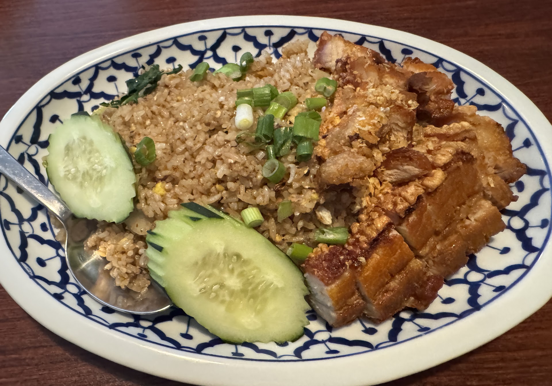 I got the C7 swimming rama lunch combo with chicken for $14.95 and hubby got the C5 cashew nut lunch combo with crispy pork for $17.95 (extra $3 for meat upgrade). Lunch combo comes with a generous portion of phad Thai, Jasmine rice, your dish of choice and an egg roll. Everything was tasty and we couldn't finish, so we boxed things to go.