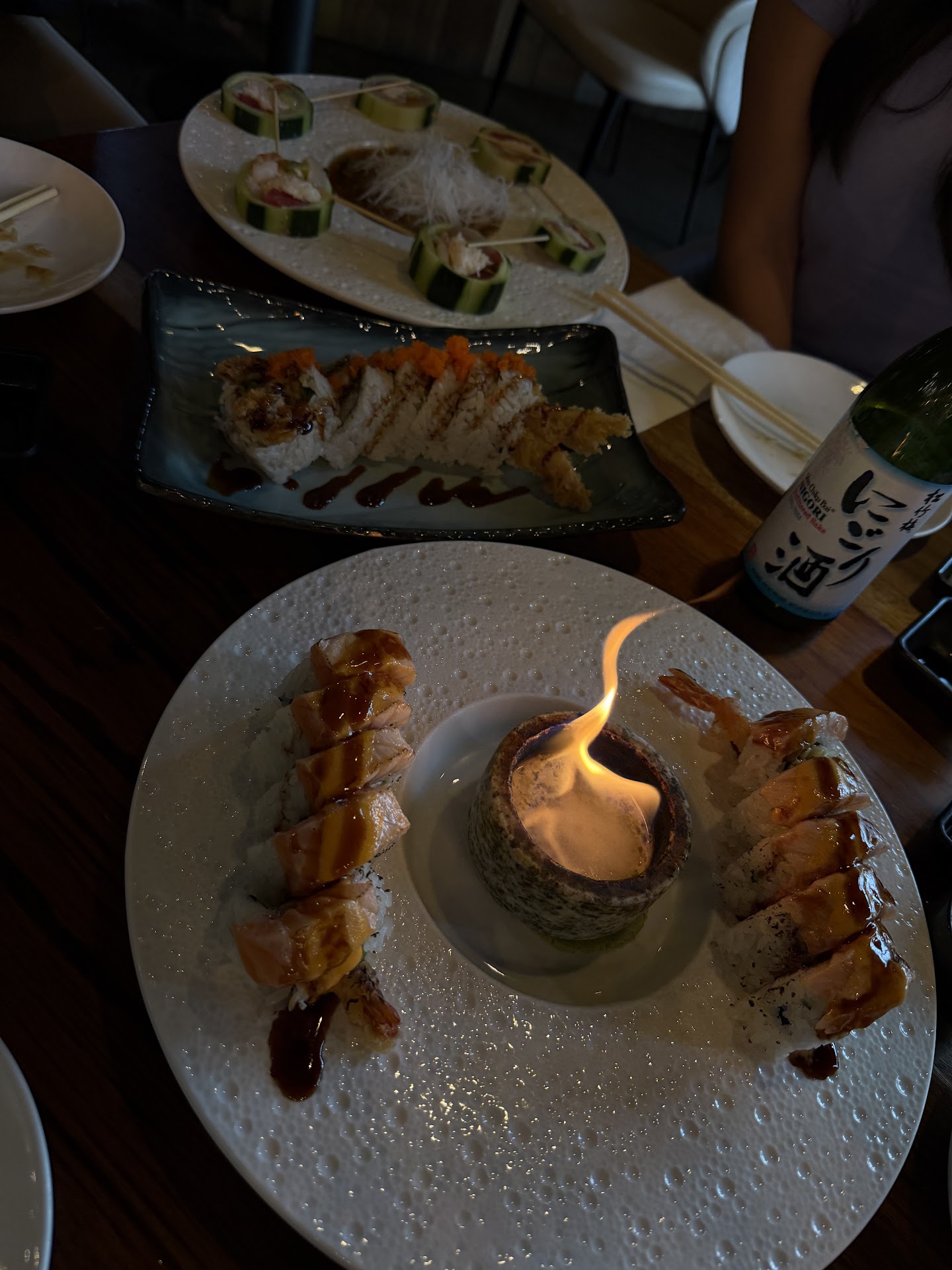 I’ve been here many times before, food is always amazing. Sake is delicious. Price is also reasonable. Great atmosphere for a date night or girls night out. However, the recent time I went, I was extremely disappointed with the host service. I walked in with my 3 girlfriends and was told there was a wait, which was understandable. The host took my name and phone number down on a post it, which I thought was odd, but whatever. We walked right next door to get a drink to pass the 25 min wait as we were told. At close to an hour, I called to see how much longer the wait would be. The host told me the table is ready NOW and the whole party has to be there in the next few minutes or the table would go to someone else. Weird that the host didn’t call me to tell me the table is ready but okay…I told the host we will be there in a minute as we were waiting right next door. Then the host tells me that the table actually isn’t ready since they are cleaning it up so to be there in the next 10 minutes. We walk over and immediately the host acts as if he hates his job. Does not greet anyone in, was not apologetic and had the biggest attitude. I told him my name and that I had just called for the table for 4 and he doesn’t say a word, walks away to check on the table that was being cleaned. Then he returns and says to follow him. When asked why he didn’t call, he said he must have dialed the number wrong. It’s not that hard to dial a 10 digit number but I guess mistakes happen. Our server was amazing, the food is delicious as always. However, this most recent experience left me disappointed and made me not...