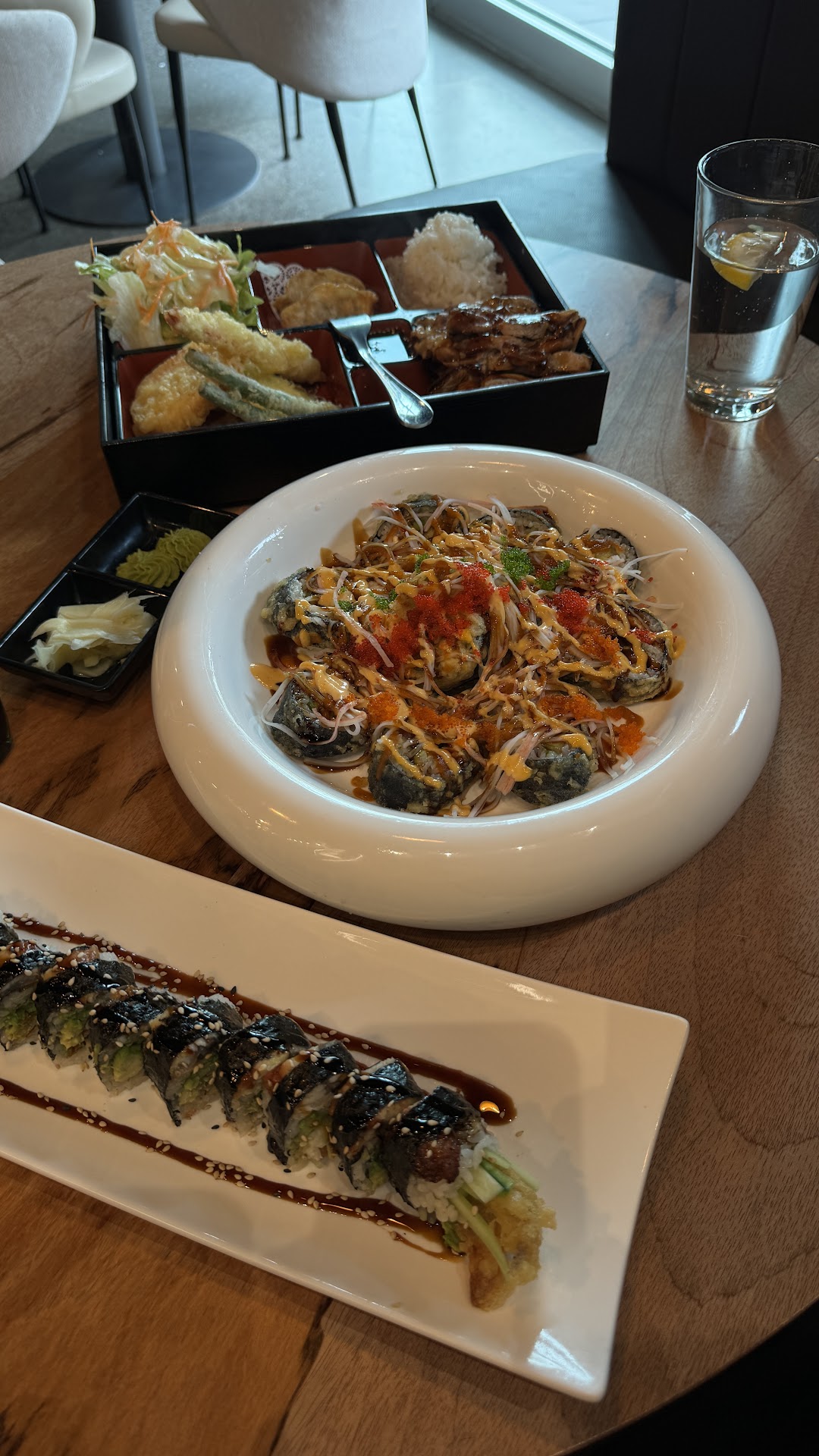 Read moreI came here for the first time today for a late lunch. They quickly accommodated us with a larger table when we had two more added to our party. I ordered the Kyoto Yuzu Pale Ale, Japanese Ceviche, Three Times Lady Roll, and Agedashi Tofu. The Japanese Ceviche was a stand out with 4 types of thinly cut fish, chopped jalapenos, chilis, cilantro and a citrusy ponzu sauce. It was delicious! Three Times Lady had a lot of different fish wrapped in rice paper that most of us enjoyed. I tried my friend's Jackbox roll that was topped with salmon and had imitation crab layered in the center. It was fresh and really good with the added lemon slice on top. Agedashi Tofu was average and got soggy quick. At our new table there was water dripping from the ceiling. Not sure if there was a leak in the roof or if it was from an AC unit but it dropped on me and my roll (before I was able to finish it) a few times. The server quickly and kindly replaced it with a new roll. When the check came most of the servers were inattentive because they were having a meal before closing down for their dinner rush. I didn't mind at all but it was a good 15 minutes before they took the bill. All in all, I would definitely go back for that Japanese Ceviche and try other items off their extensive menu if I'm ever craving sushi in the...