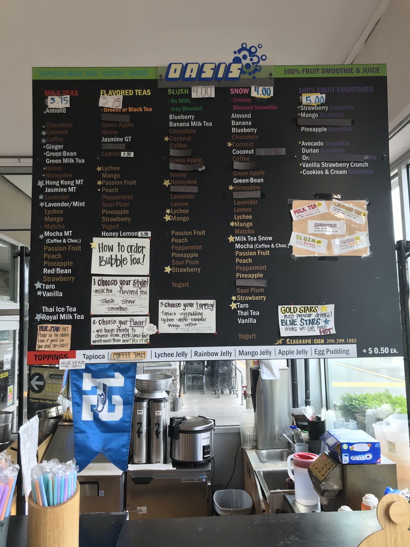 Save money and get yummier boba nearby at Cherry de Pon. We usually go there but it was closed so we went to Oasis. The pricing there is actually cheaper AND tax is already included. Both my husband and I agree that the drinks at Cherry de Pon is more flavorful, the drinks at Oasis tasted diluted. In short, we will never...