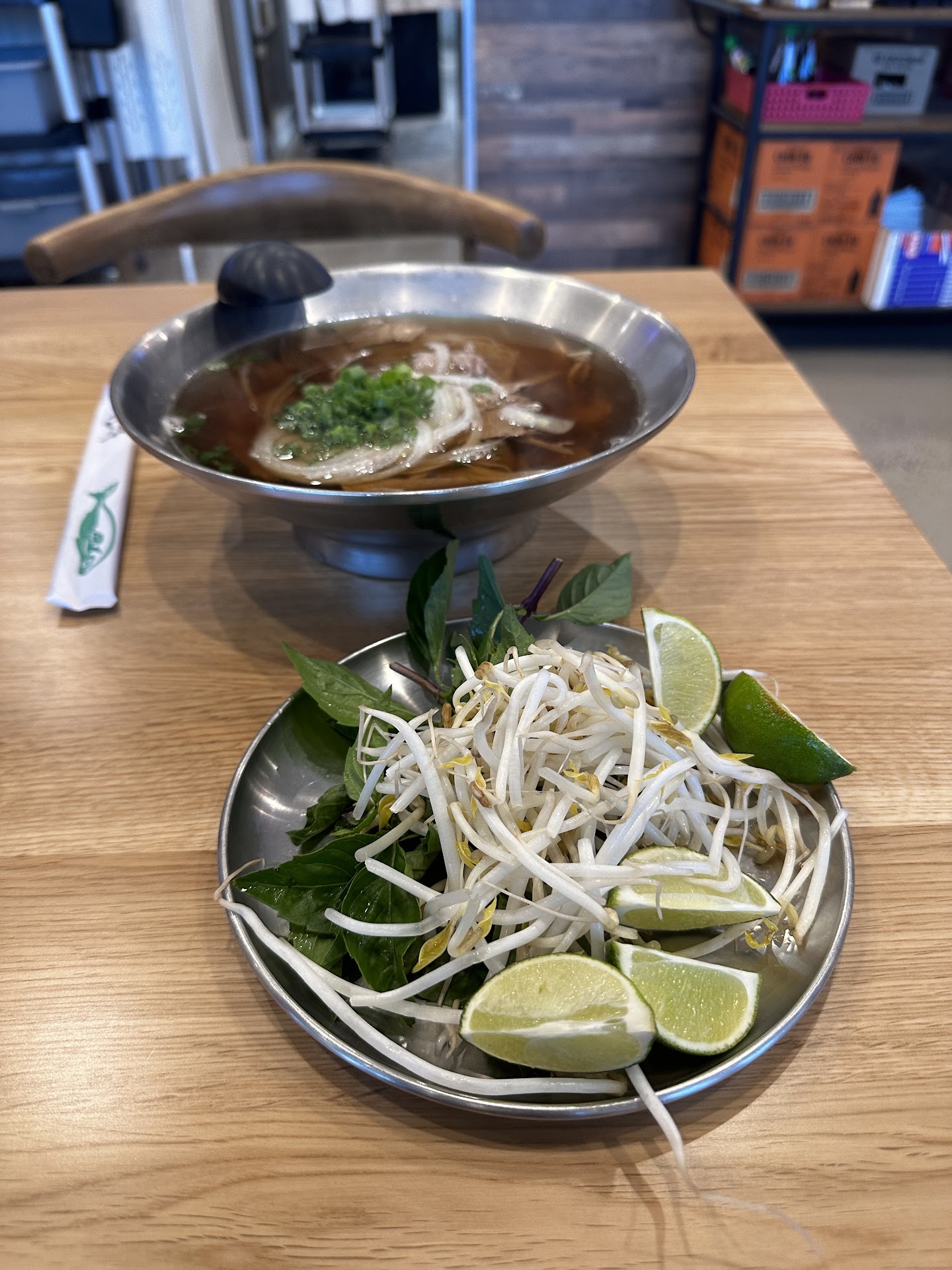 We got a bowl of pho and a pork banh mi. The banh mi had distinctly Korean-flavored pork instead of what one would expect in a banh mi, and the pickled carrots and daikon were very underwhelming. It was doused with a sweet-ish mayonnaise based sauce with a yellow hue to it. Overall it wasn't a terrible sandwich, but definitely not what I wanted when ordering a pork banh mi.