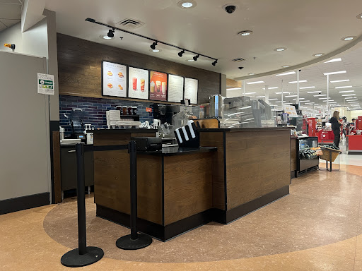Starbucks used to be about an experience. This location is about as McDonalds as it gets without the clown statue. For starters, it in the Target, next to the Target deli selling hot dogs and popcorn. That is mostly what you smell. What you here is the constant, relentless BEEP BEEP BEEP of Targets nearby registers. Chairs are hard, florescent lights harsh and cold, windows look out on a vast asphalt parking lot. It's still the same standardized coffee and the staff is well trained. Slightly light on menu as the case is very samll, probably because Target, afterall. This Starbucks is missing the welcoming, trendy environment that makes half the experience. This location and locations like it bring down the SBUX brand IMHO. It...