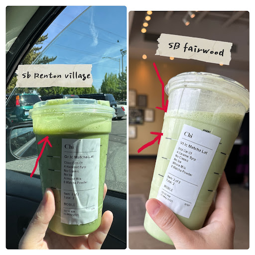 If there were a competition for the thinnest cold foam in the Pacific Northwest, the Starbucks at Renton Village would undoubtedly take the prize. It was practically invisible on my drink. To illustrate, the photo on the left shows the cold foam I received with my order on May 9th. You can barely see it's there. The photo on the right shows the cold foam from an order I placed at a different Starbucks location today (and I've already taken a few sips!). When I inquired with the staff member at the Renton Village location about the lack of cold foam, the response I received was that it had sunk because I ordered my drink without ice. The female employee who answered me was very dismissive and didn't even look at me or check my drink. This explanation is fundamentally flawed, as cold foam is a light foam with a lower density than the milk and matcha, meaning it should naturally float and be VISIBLE even without ice. For context, I order a matcha latte with no ice and cold foam roughly every other day, and I have never received a drink with such a minuscule amount of cold foam. This experience at the Renton Village location was quite...