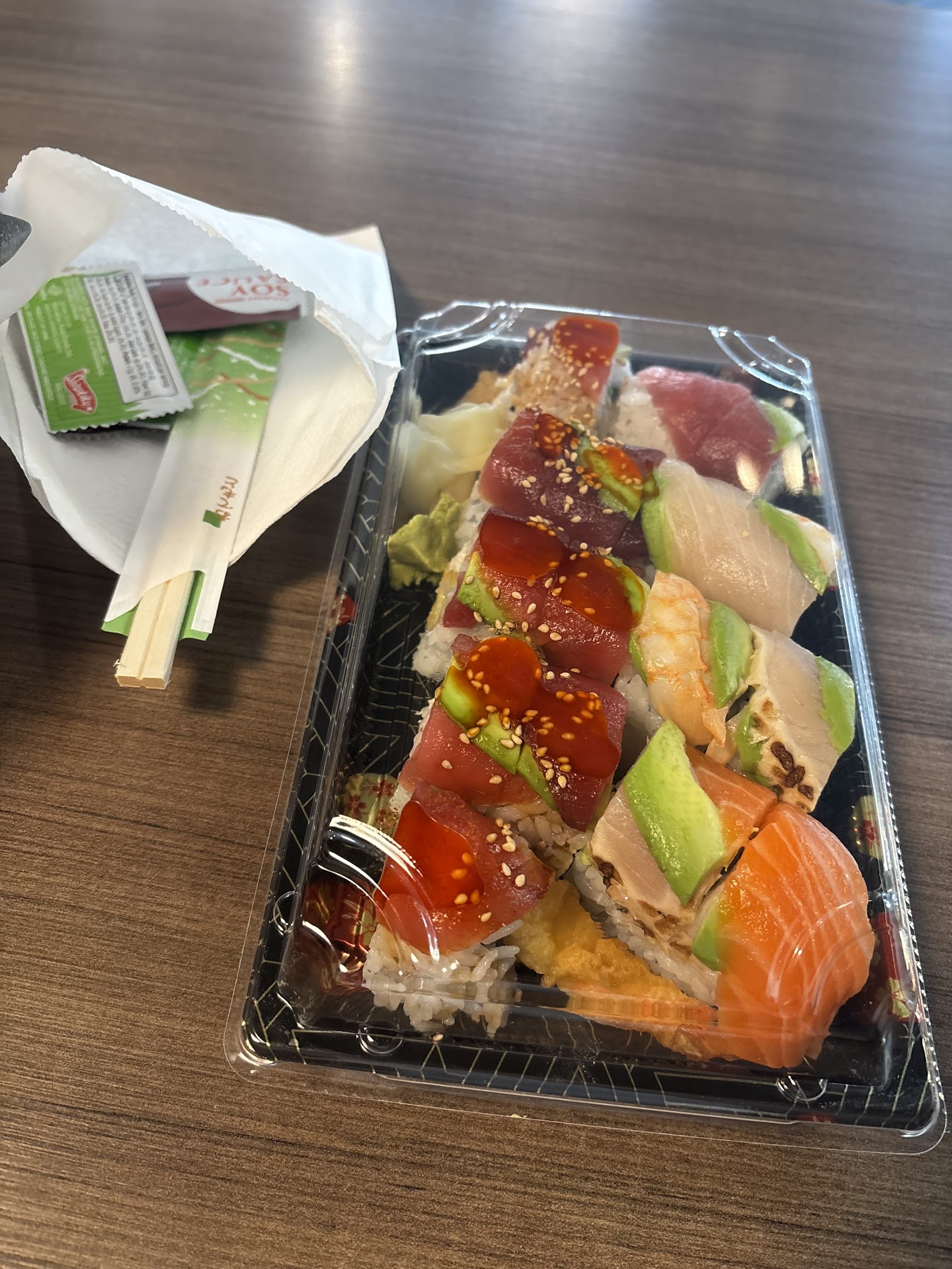 Read moreWell I had come here with my girlfriend hoping that we had found a great local sushi place. However, we will absolutely not be coming back here. We had crab wontons, lumpia, and seaweed salad for appetizers. Then my girlfriend ordered a California roll and Vegas roll. I got the Hella Hot and Phoenix rolls. Everything looked great upon arriving to the table. The Hella Hot roll was packed loosely and almost every piece fell apart which was disappointing. The next disappointment was our waitress disappeared which is tough to do in such a small restaurant and with only one other party of two. I waited over 10 minutes before I had to waive down someone who wasn't waiting on us to ask for water. Turns out she was sitting behind the counter talking to one of the cooks. I don't think it's asking too much to be checked on after food is brought to the table.