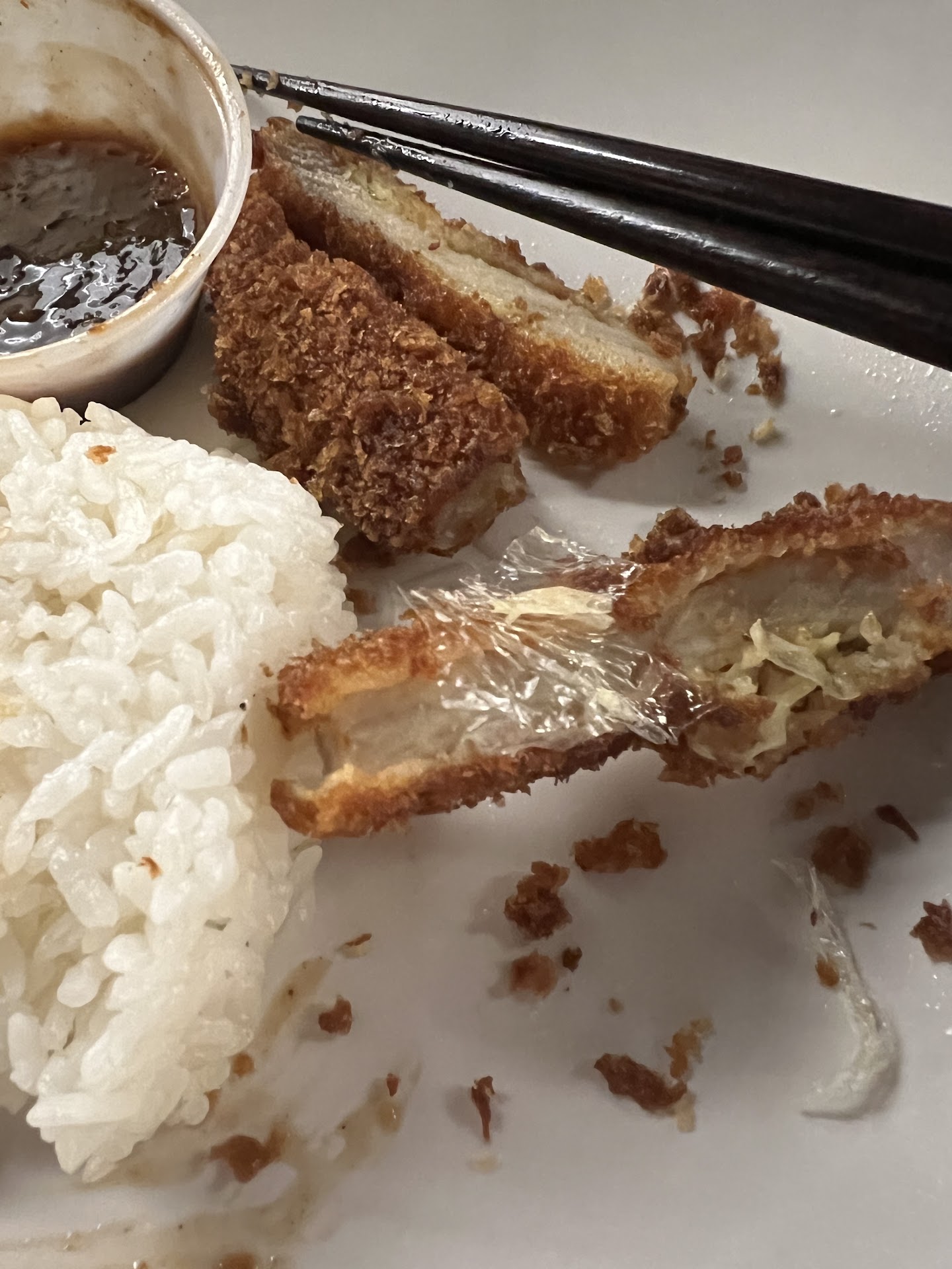 Read moreI got takeout on Saturday night that included a bento order with tonkatsu. The katsu was chewy. We assumed it was just overcooked until 3/4's of the way through some plastic film came out from underneath the breading. We inspected the rest of the katsu and it looked like the entire thing was covered in plastic, so we'd already eaten most of it.