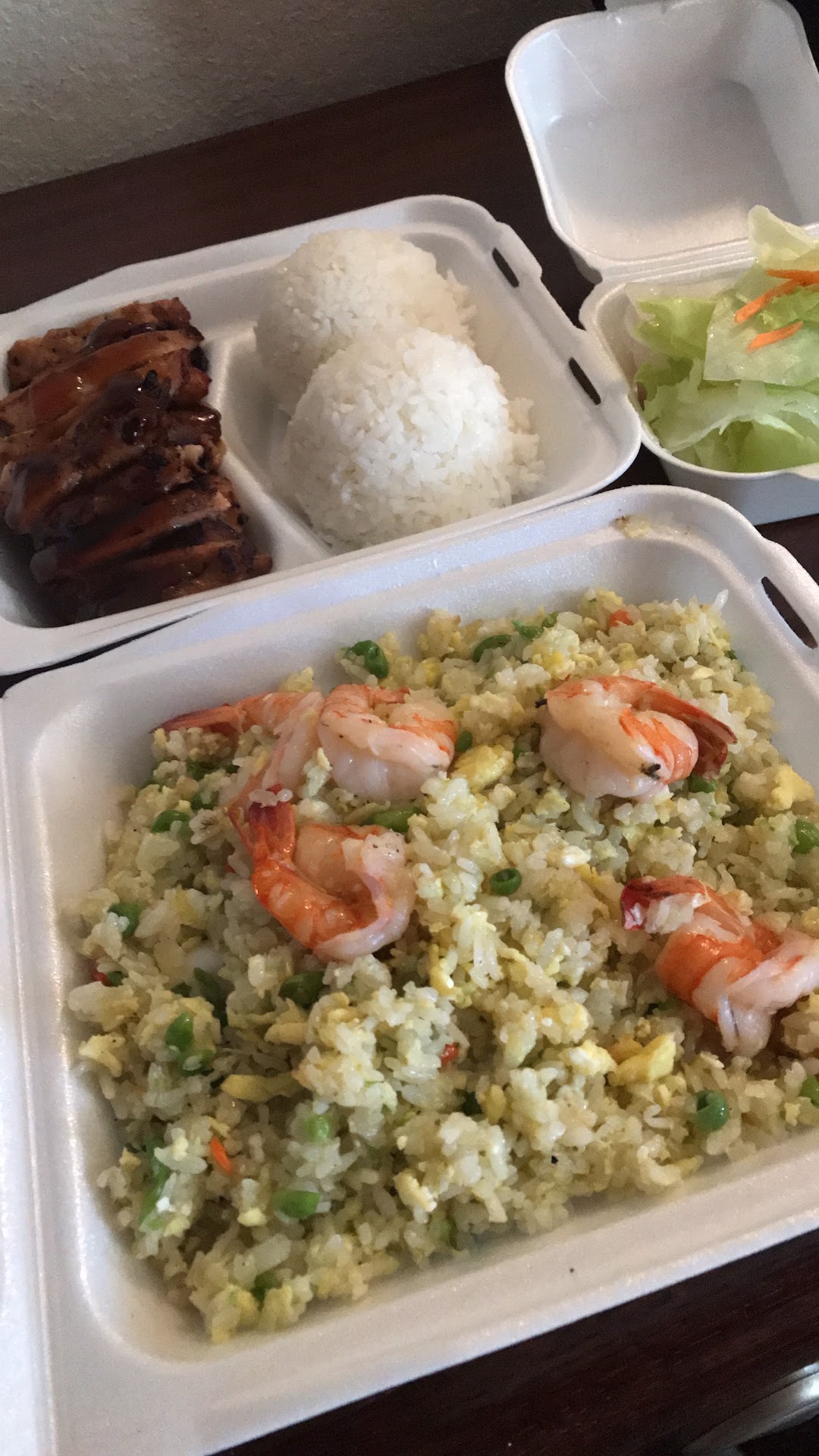 The chicken fried rice is perfectly portioned. The amount of chicken goes perfect with the amount of vegetables. It includes green beans,peas,corn,carrots,egg and your choice of meet. All of it put together complements each other which gives it a sweet savory taste.