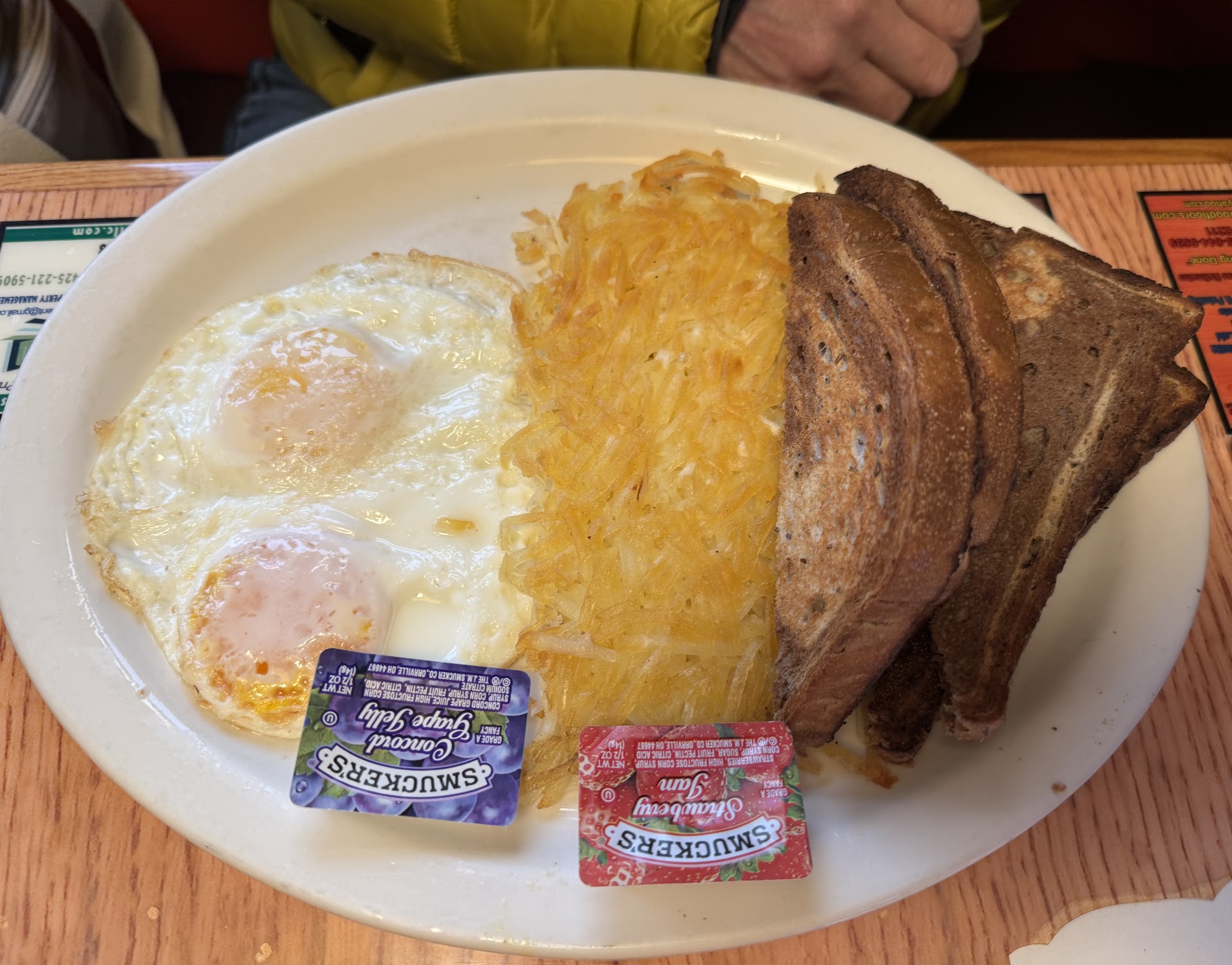 Read moreUPDATE: 9/11/24 - Again great food, GREAT Service - The restaurant is a "sit where you'd like restaurant" so customer balancing can definitely get unbalanced. Not sure what the rules are about assisting each other if you have time, but was shocked see the only other server who I'll be referring to "lazy gal" was waiting on only 3 tables with maybe 8 customers on the other side of restaurant. At times just hanging around doing nothing, while our gal, Christina, was never out of high speed mode with her 8+ tables with 30+ customers. I had asked lazy gal for coffee since she was just standing there not doing anything, she said yes then did nothing. Few moments later Christina came over with coffee. Apparently lazy gal told our server that we needed coffee. While Lazy gal was doing nothing, she could have assisted our coffee or even delivery of food when it was ready even though it may not have been for her measly 3 tables. Especially since our server was busy entering orders, taking care of her many customers, ringing them out, bussing her tables while trying to stay on top on delivering food. When I was at the counter waiting to pay, lazy gal , who was at the counter too, just standing there, wouldn't assist me saying your waitress would have to ring you up, which may be true. Then just stood there and continued to watch as Christina was working non stop. I didn't see a time that Christina ever slowed down. Christina was AMAZING!! The other gal "lazy gal" was just that.. LAZY! Teamwork would certainly make for a more pleasant experience overall. A customer that has to wait for their food because another server was too lazy to assist isn't good customer service and not good business sense. Christina gets a BIG ATTA GIRL from both myself...
