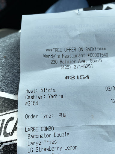 Read more*Alicia and her team *Evelyn *Sabrina and *Carlos and *everyone there on staff had all formats of the business humming drive thru phone APP and walkin customers like me, some place sacrifice in person at the counter for the drive thru aka McDs BK others, you found the right balance and had the right number of staff to keep all formats satisfied and not waiting. I have not found that anywhere else today not McDs, not BK, not Carls Jr, not Popeyes, NOWHERE. having experienced hispanic teams are the key also. IDK if she is part owner, owner, manager, assistant manager, but she is expert and mature enough to get into operations and fill in where needed to keep the flow and all customers happy, I DONT SEE THAT EVERYWHERE ELSE, staff shortages impacting everyone else. AMEN, Congrats. WENDYS is my favorite fast food, prices are still reasonable too. ONLY fast food with quality salads baked potato and proud of it. Variety of salad choices too. Original Frostys THE BEST. So many BESTS here. BTW I had the Taco Salad with chili with taco ships sour cream and salsa, double stack burger w cheese fresh meat juicy patty better tasty than others, small fancy soda from the fancy coke machine ALL of this for *11 dollars OMG. Could've got cheaper if i chose some of their combo meals which lower economize the prices of soda and add fries too. Wendys wins by a big fat MILE vs. McDs, BK, Carls Jr, even local independants are at $15 for...